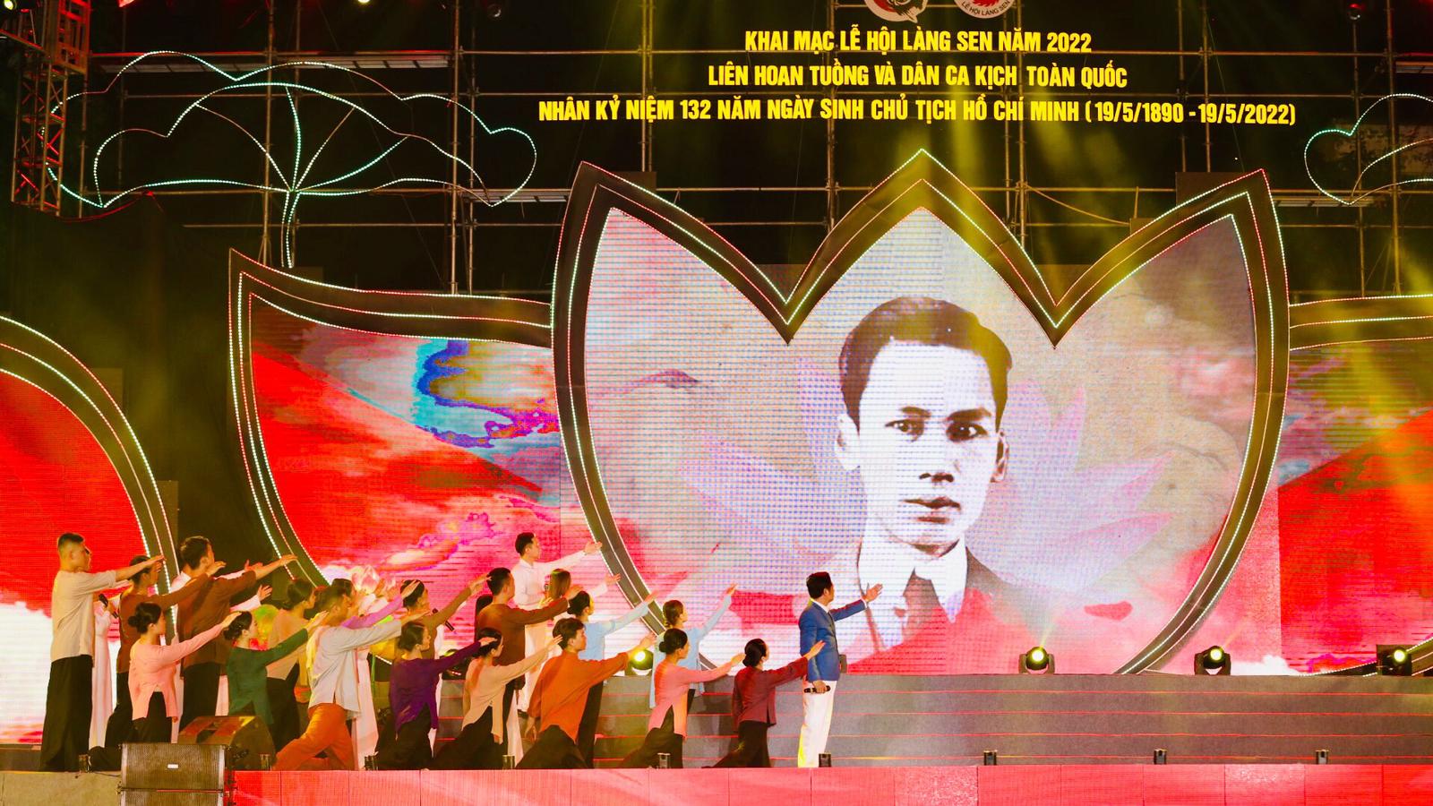 (Thanh tra)- Tối 17/5, tại Sân vận động Làng Sen, xã Kim Liên, huyện Nam Đàn đã diễn ra khai mạc Lễ hội Làng Sen và Liên hoan Tuồng và Dân ca kịch toàn quốc 2022.