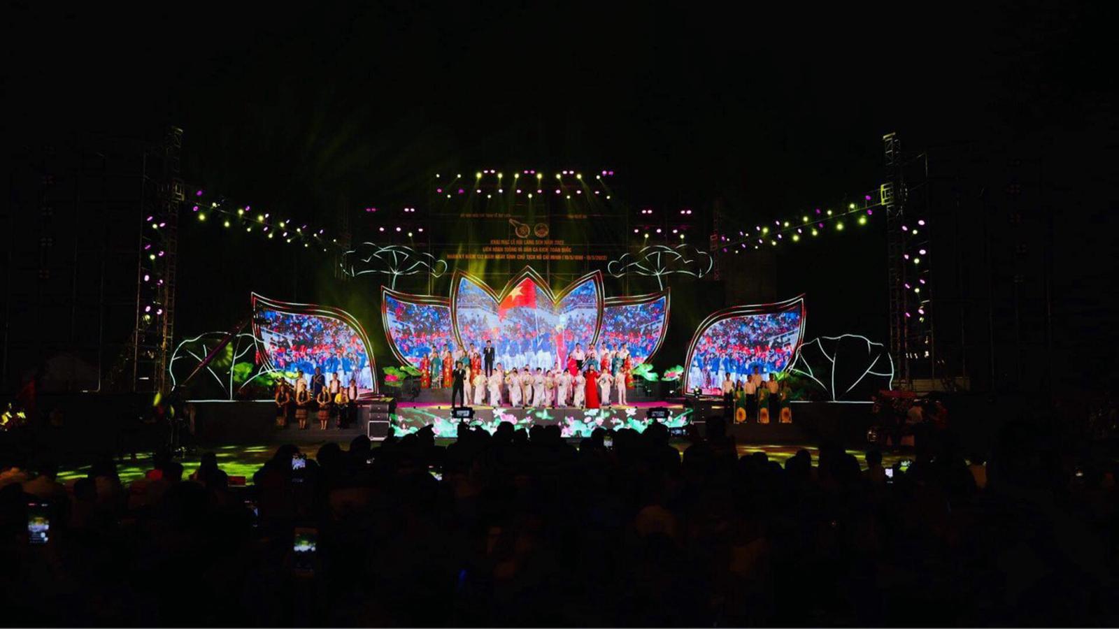 Trong đêm khai mạc Lễ hội Làng Sen 2022, các đại biểu, người dân trong tỉnh và du khách được theo dõi Chương trình nghệ thuật đặc sắc "Người là niềm tin tất thắng".