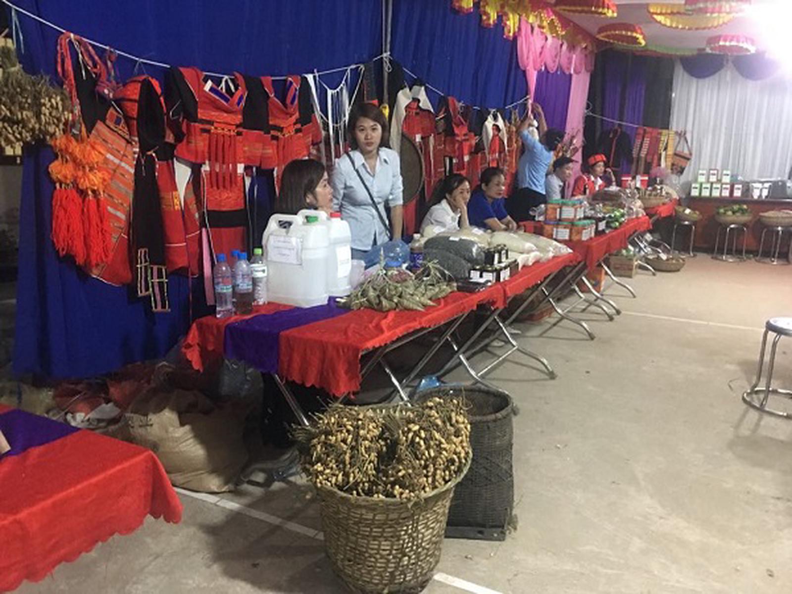Gian trưng bày sản phẩm nông sản và thủ công mỹ nghệ của người Pà Thẻn xã Tân Bắc