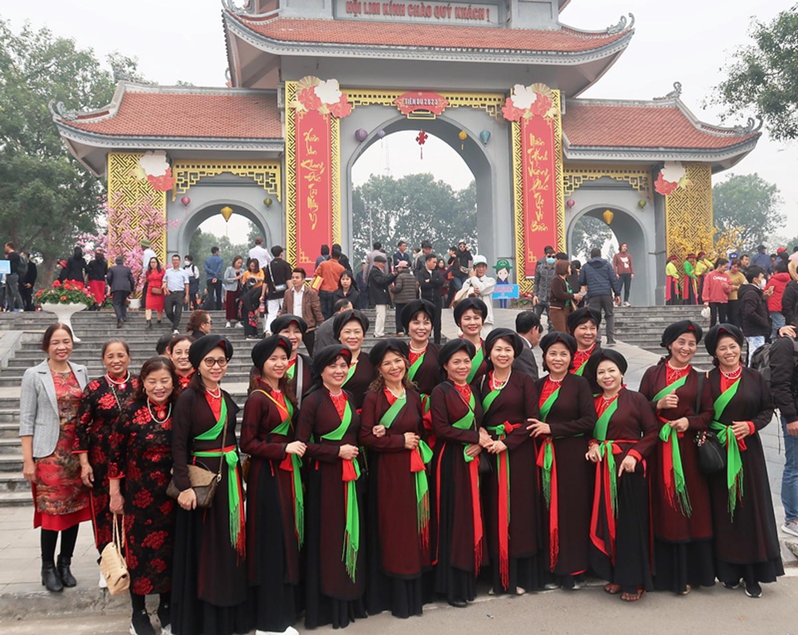 Du khách đến với hội Lim được tham gia giao lưu hát dân ca Quan họ Bắc Ninh với các liền anh, liền chị Quan họ. Ảnh: HH