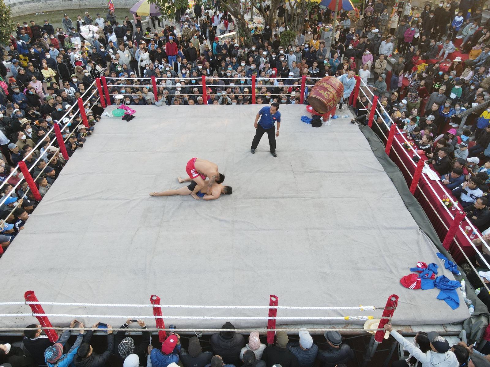 Một miếng đánh độc đáo của các đô vật. Ảnh: KT