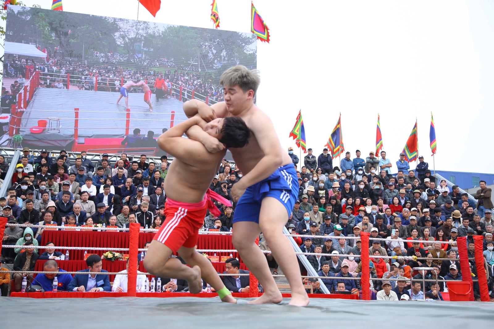 Màn khởi động ấn tượng của 2 đô vật tham dự lễ hội. Ảnh: KT
