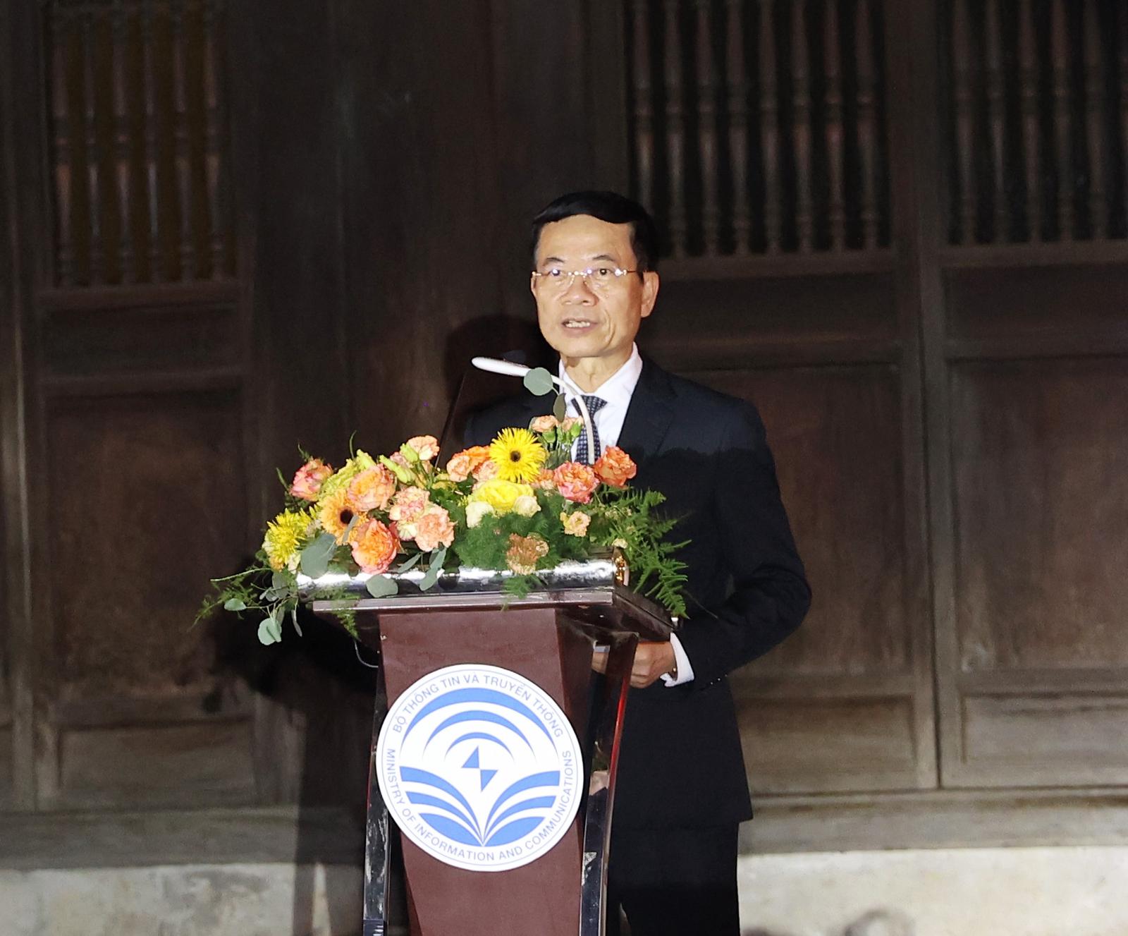 Ông Nguyễn Mạnh Hùng, Bộ trưởng Bộ Thông tin và Truyền thông phát biểu tại lễ khai mạc Ngày Sách và Văn hóa đọc Việt Nam lần thứ 3. Ảnh: Thảo Anh