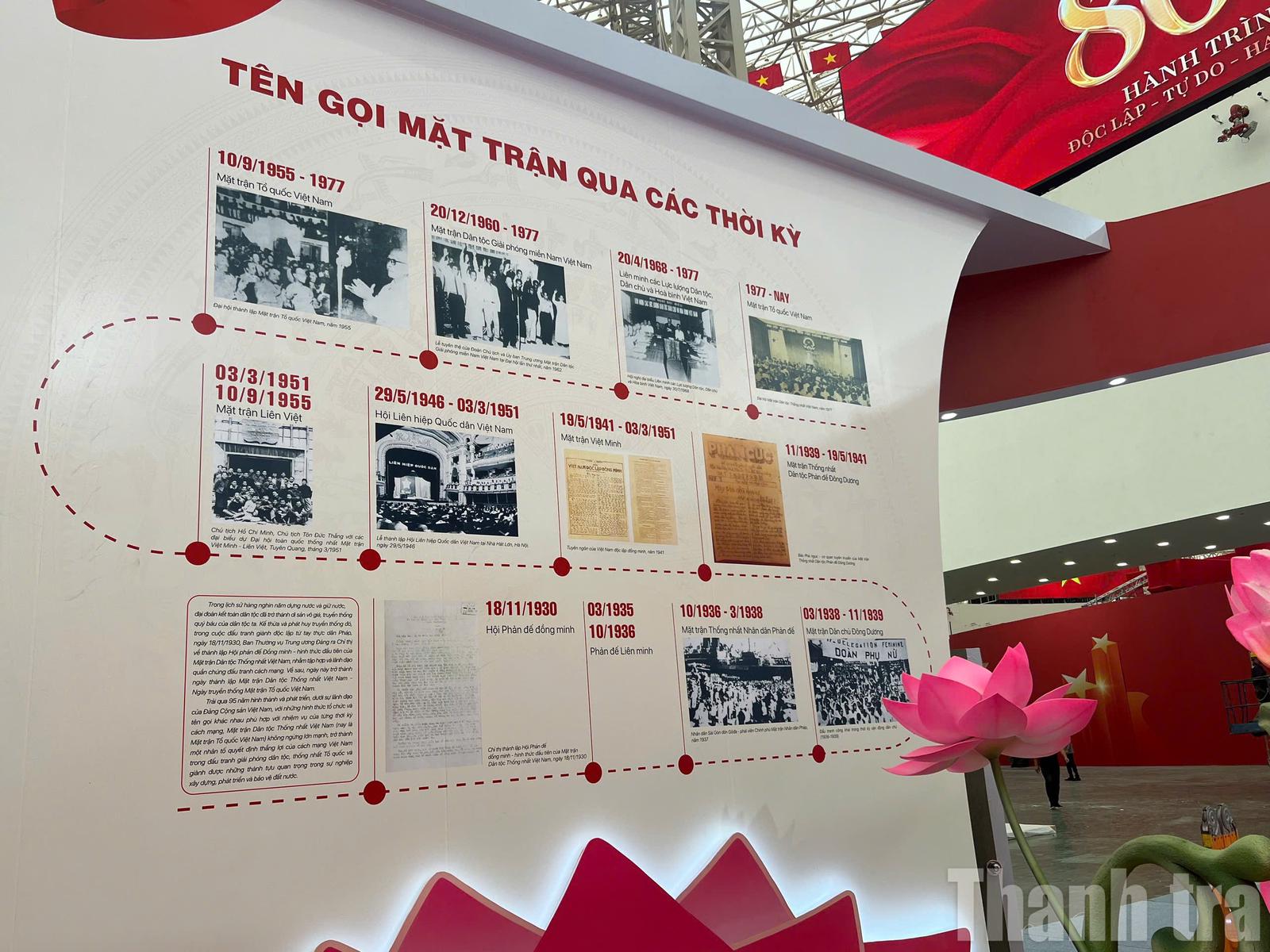 Tại đây, khách tham quan có thể theo dõi dòng chảy lịch sử của Mặt trận Tổ quốc Việt Nam qua các giai đoạn, từ khi thành lập đến nay. Không gian tái hiện vai trò của Mặt trận trong việc đoàn kết, tập hợp các tầng lớp Nhân dân tham gia kháng chiến, giải phóng dân tộc.