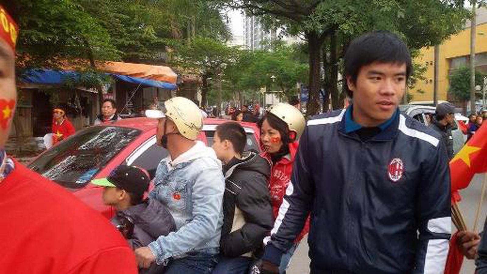 Đường phố vang dội tiếng hò reo cổ vũ của CĐV Việt Nam. Ảnh: H.O