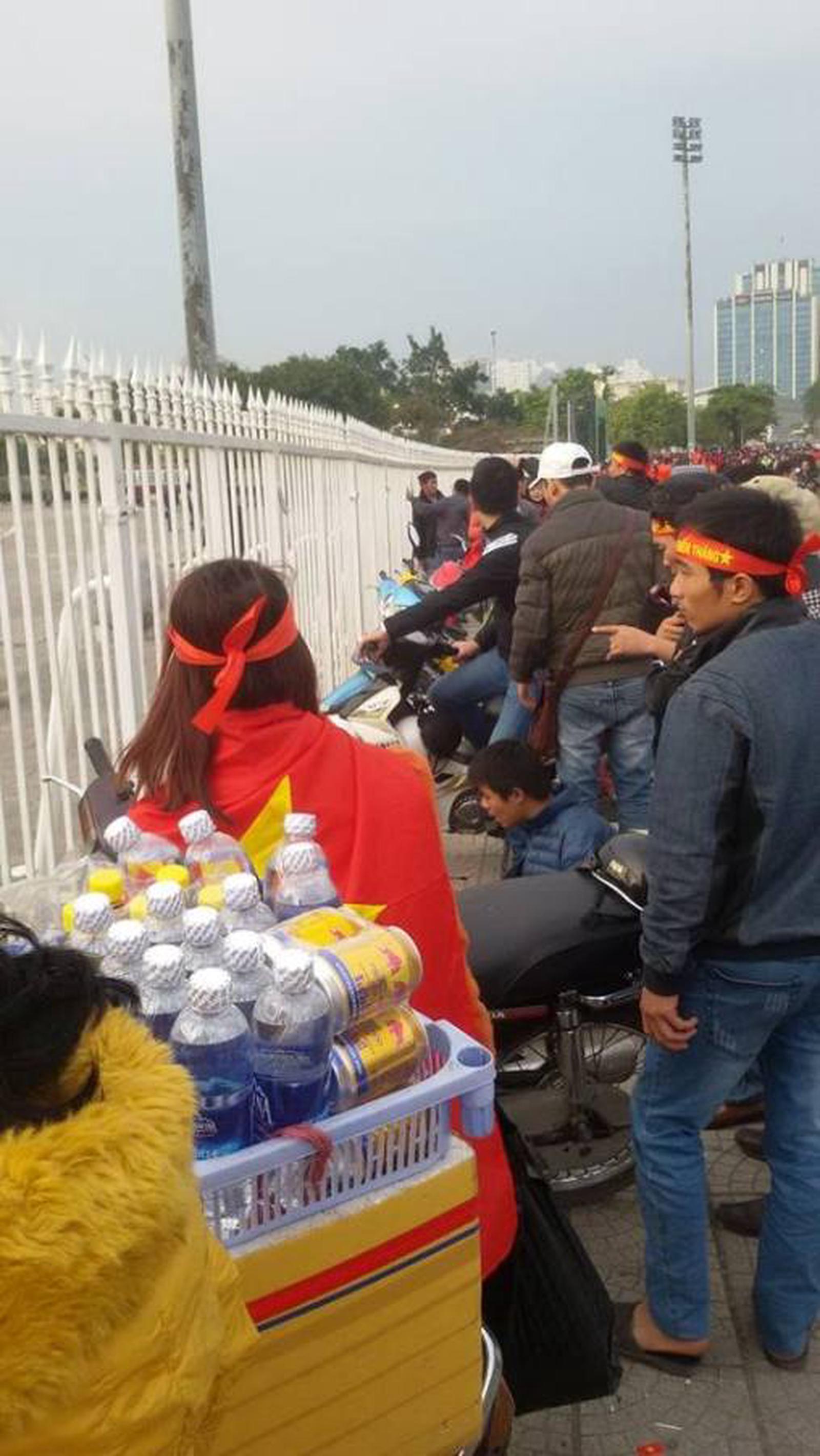 Vừa bán hàng, vừa cổ vũ cho đội tuyển Việt Nam. Ảnh: H.O