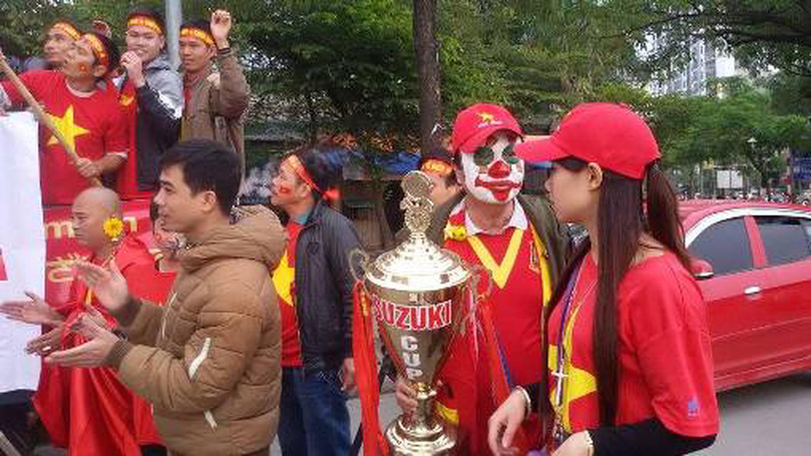 Tiến sát tới khu vực SVĐ Mỹ Đình, không khí thực sự cuồng nhiệt đã được hội CĐV Việt Nam thắp lên bởi tiếng trống, tiếng kèn vang dội cùng với lời câu hát: "Như có Bác Hồ trong ngày vui đại thắng" đã vang xa khắp sảnh và cửa SVĐ Mỹ Đình khiến bất cứ ai đi đường cũng thấy vui mừng, phấn khởi và vỗ tay tán tưởng cùng với các CĐV.