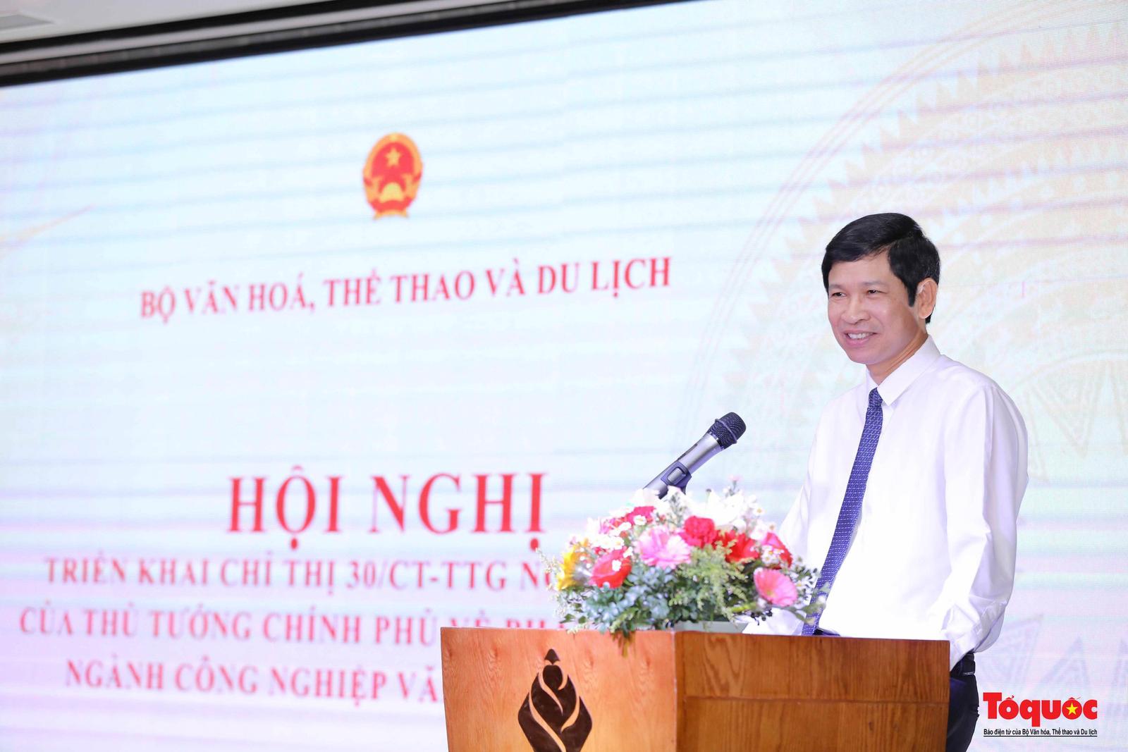 Phát biểu khai mạc hội nghị, Thứ trưởng Bộ VHTTDL Hồ An Phong nêu rõ: Chỉ thị 30/CT-TTg của Thủ tướng Chính phủ có điểm mới là quy định rõ trách nhiệm không chỉ của Bộ VHTTDL mà còn của các bộ, ngành liên quan; quy định trách nhiệm của các địa phương, nhất là các địa phương được xác định là trọng điểm trong việc phát triển CNVH.