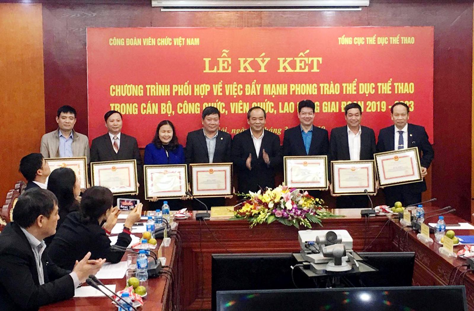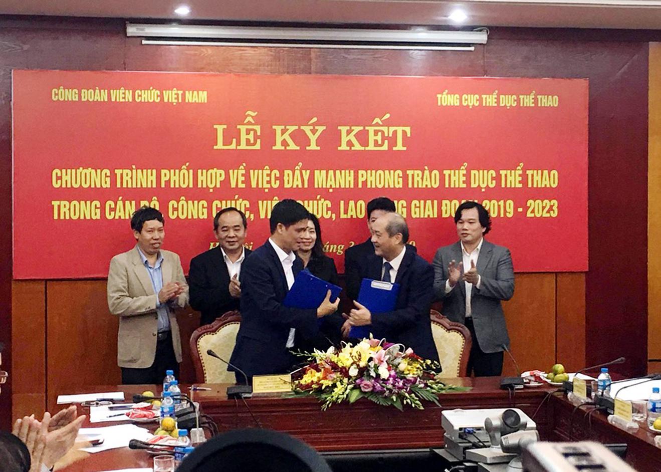 Công đoàn Viên chức Việt Nam và Tổng cục Thể dục thể thao ký kết chương trình phối hợp đẩy mạnh phong trào thể dục thể thao. Ảnh: TT