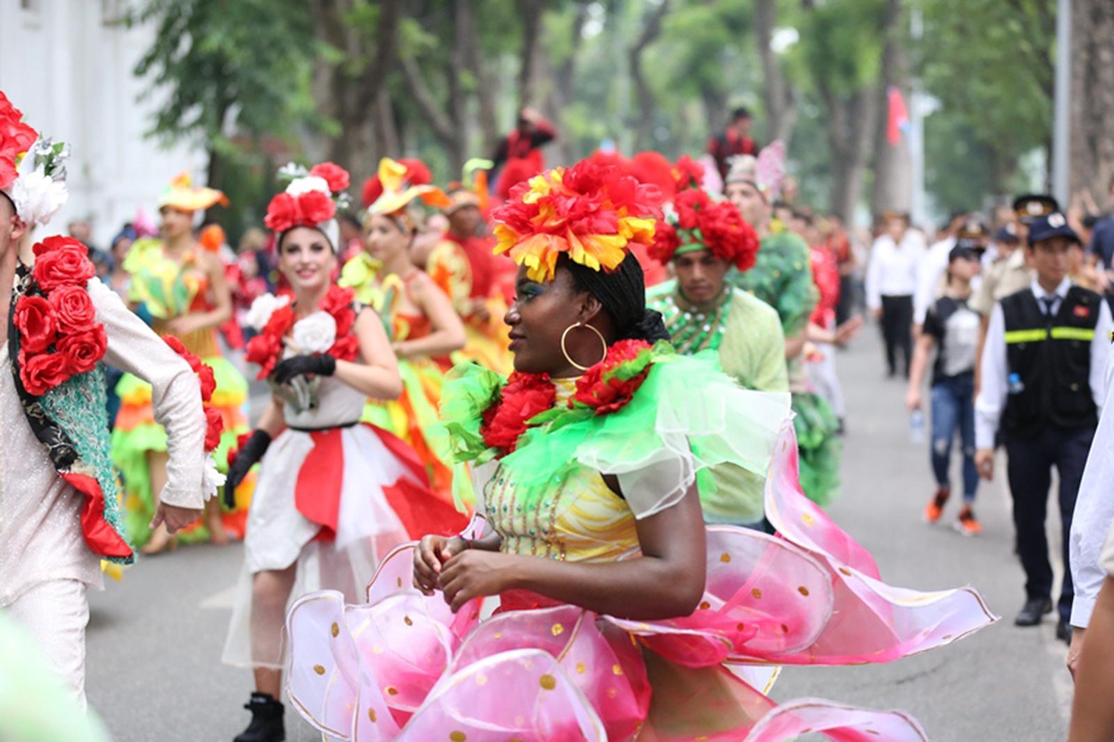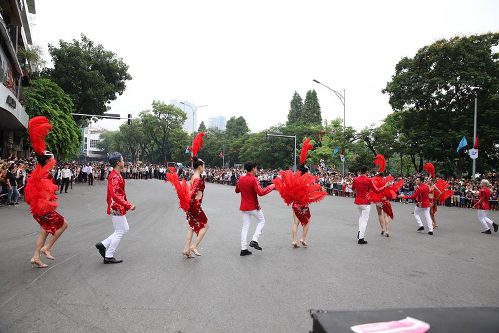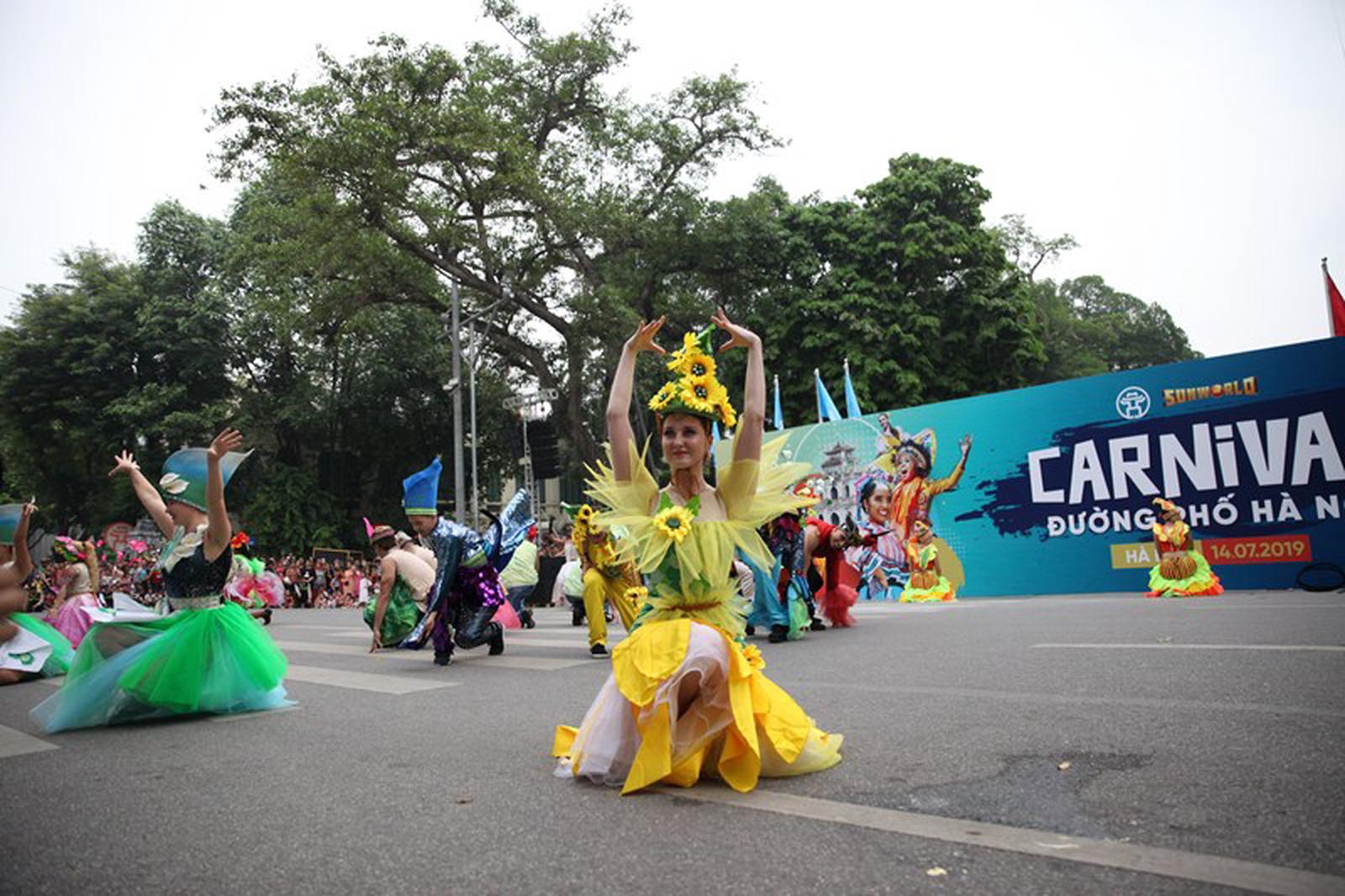 Diễn ra trong khung giờ từ 09h đến 11h sáng ngày 14/7/2019, Carnival đường phố với sự xuất hiện của xe hoa và gần 100 nghệ sĩ chuyên nghiệp trong nước và quốc tế trong trang phục rực rỡ sắc màu đã khuấy động đường phố Hà Nội.