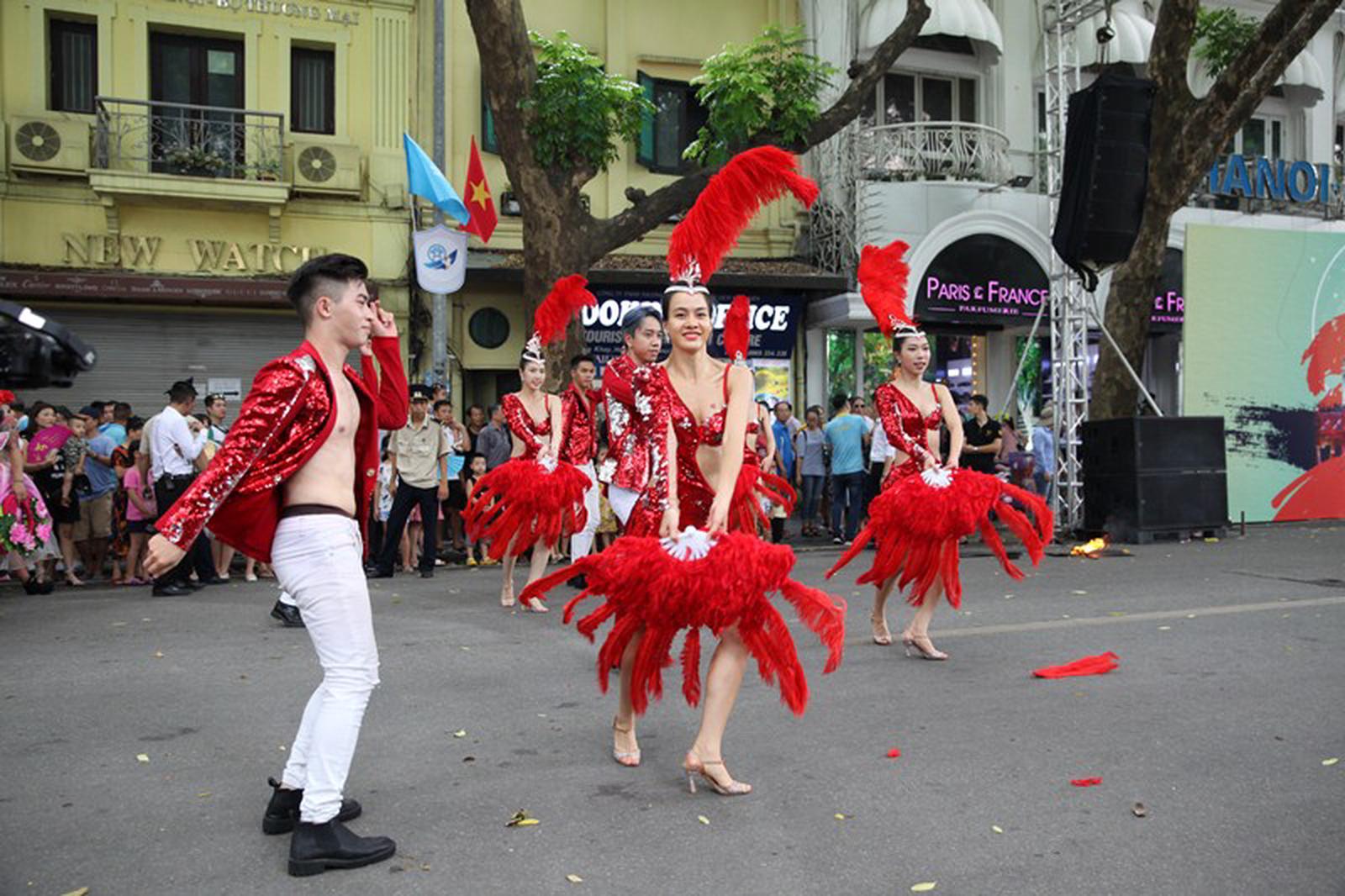 Người dân và du khách đến với phố đi bộ Hồ Gươm dịp này đã được hòa mình vào không khí lễ hội tưng bừng náo nhiệt, tận mắt chiêm ngưỡng những vũ điệu carnival châu Mỹ nóng bỏng, những màn trình diễn nghệ thuật hấp dẫn như múa lửa, múa trống, xiếc …