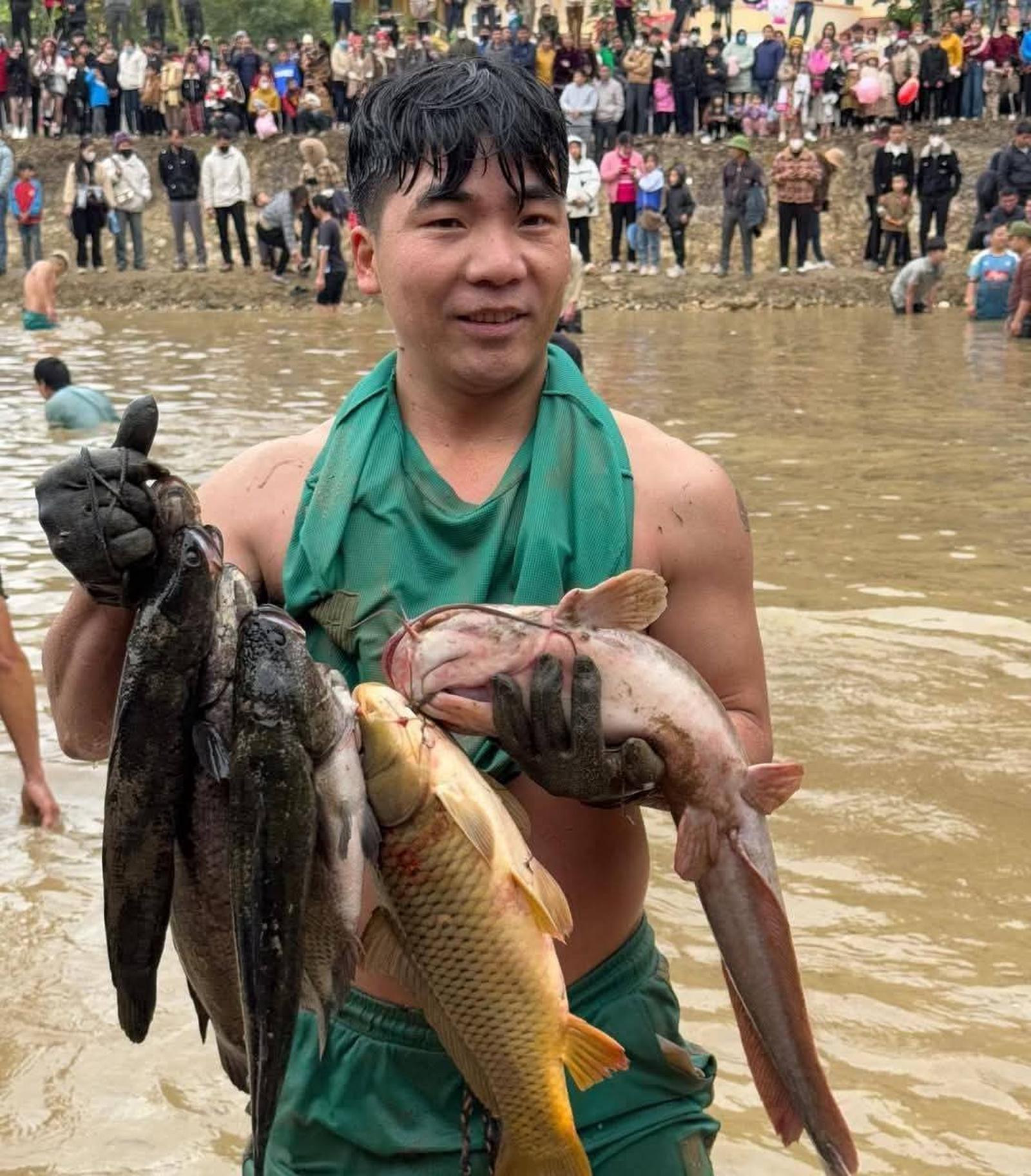 Đặc sắc nhất là hội thi bắt cá giữa thời tiết lạnh buốt. Ảnh: ND