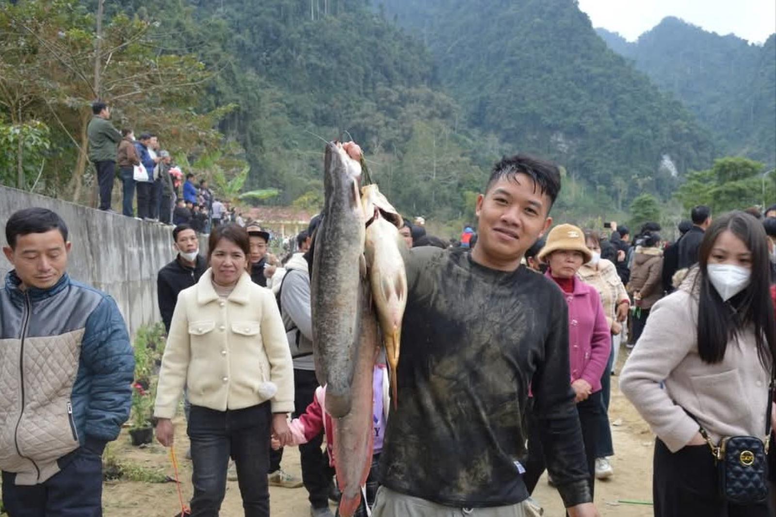 Đặc sắc nhất tại lễ hội là màn thi bắt cá dưới hồ nước lạnh buốt, hàng trăm người lao xuống làn nước lạnh bắt cá bằng tay không.
