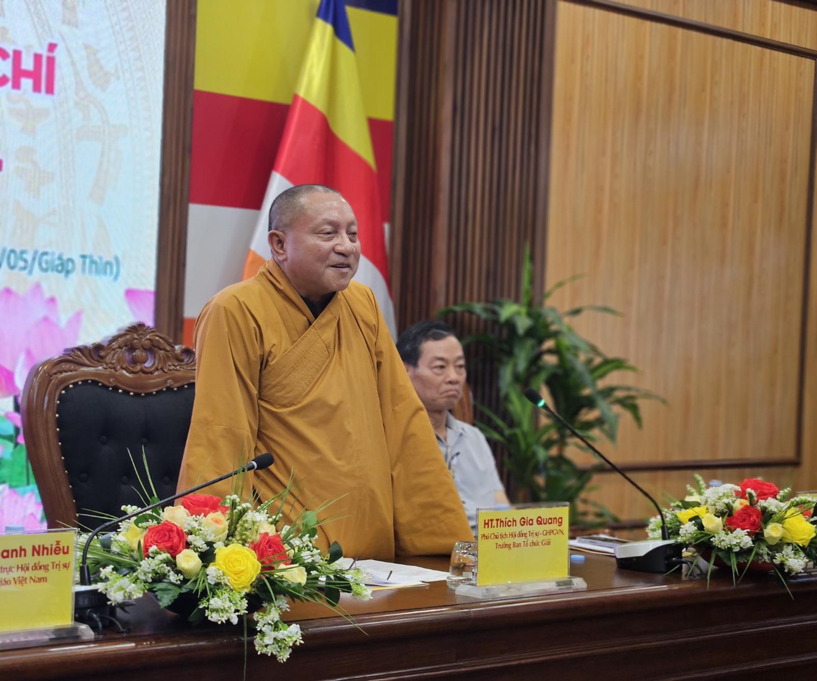 Hoà thượng Thích Gia Quang chủ trì buổi họp báo. Ảnh: TV