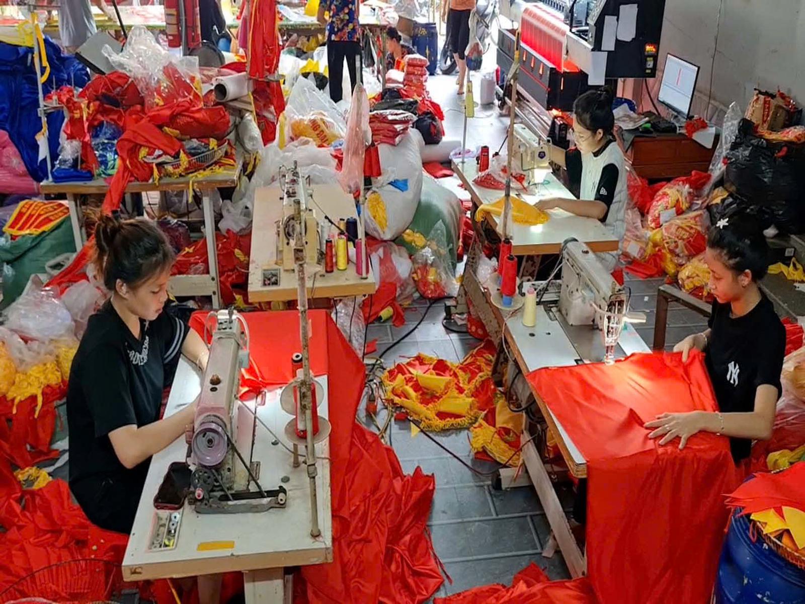 Làng nghề may cờ Tổ quốc tại thôn Từ Vân, Thường Tín, Hà Nội. Ảnh: CB
