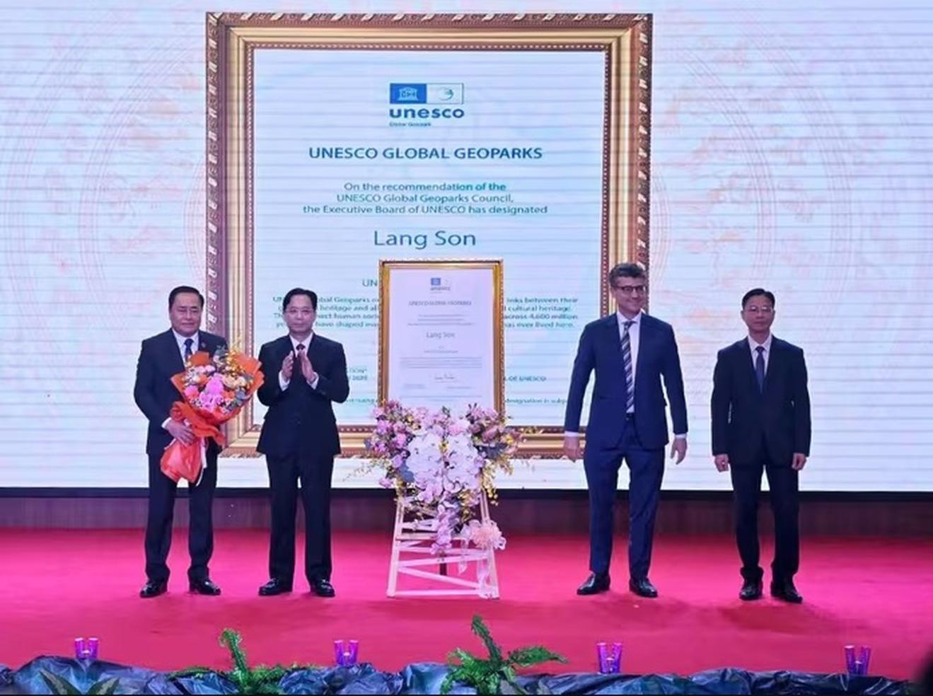 Phát biểu tại buổi lễ, ông Ngô Lê Văn, Thứ trưởng Bộ Ngoại giao, Chủ nhiệm Ủy ban Công tác về các tổ chức phi chính phủ nước ngoài cho rằng, Công viên địa chất toàn cầu UNESCO Lạng Sơn là minh chứng rõ nét cho nỗ lực gìn giữ và quảng bá di sản văn hóa Việt Nam cùng với các di sản văn hóa phi vật thể như tín ngưỡng thờ Mẫu, hát Then của người Tày, Nùng, Thái.