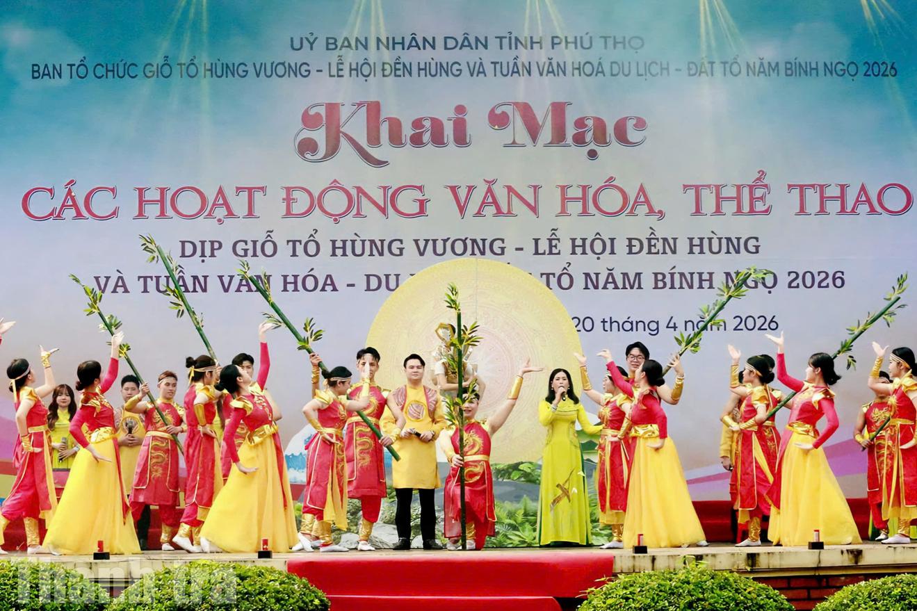 Sáng 20/4, tại Khu Di tích lịch sử Đền Hùng, tỉnh Phú Thọ, Ban Tổ chức Giỗ Tổ Hùng Vương, Lễ hội Đền Hùng và Tuần Văn hóa, du lịch Đất Tổ năm Bính Ngọ 2026 chính thức khai mạc chuỗi hoạt động văn hóa, thể thao và du lịch đặc sắc phục vụ Nhân dân cùng du khách thập phương.
