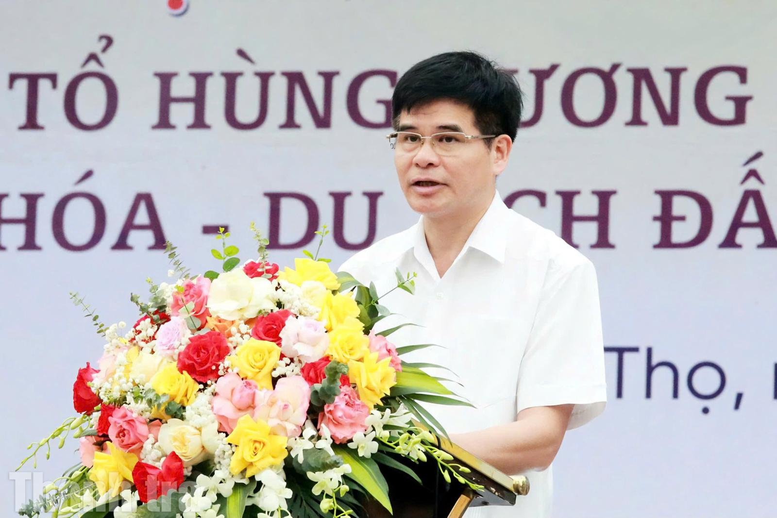 Ông Dương Hoàng Hương, Giám đốc Sở Văn hóa, Thể thao và Du lịch tỉnh Phú Thọ phát biểu khai mạc. Ảnh: TM