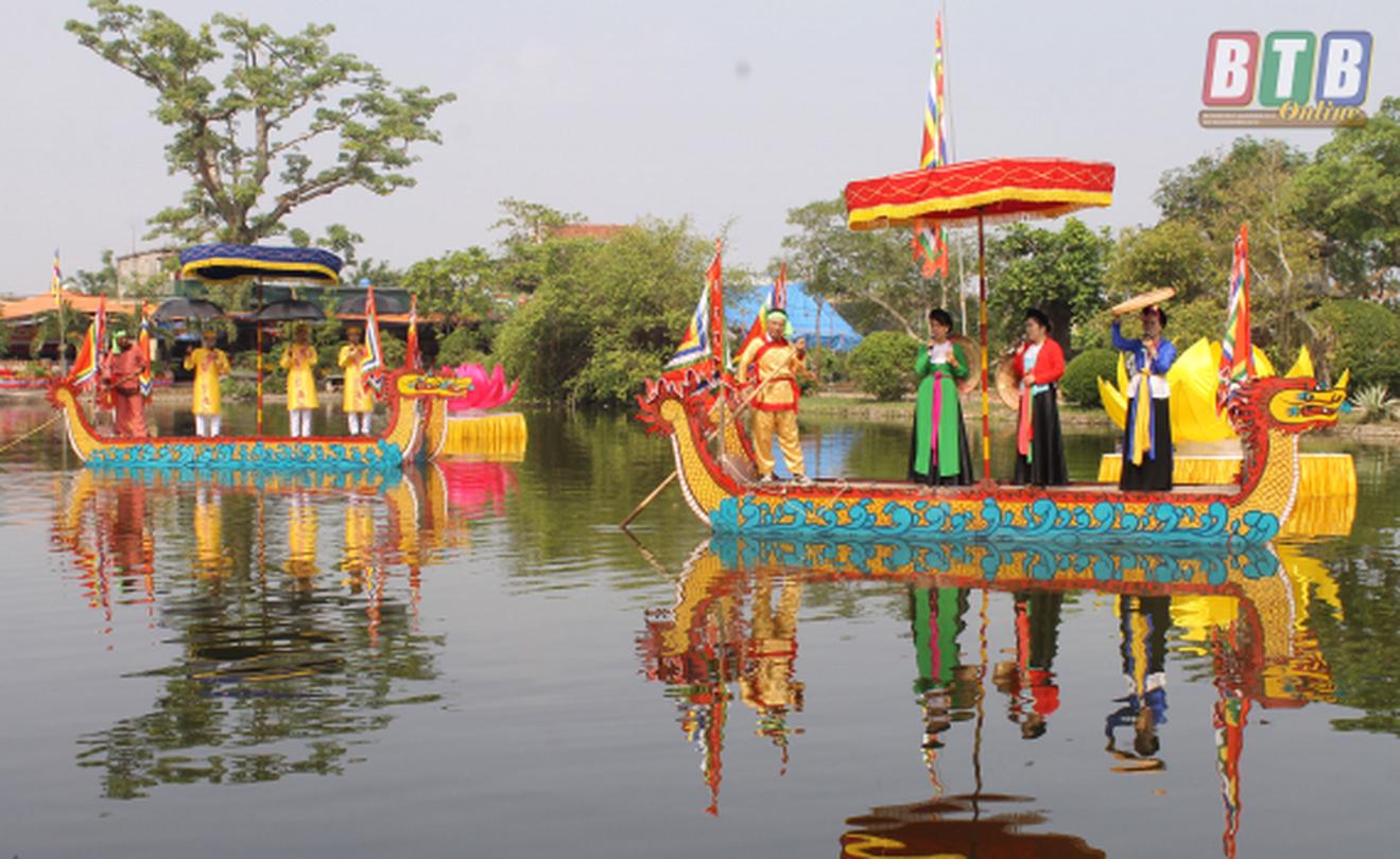 Biểu diễn du thuyền hát giao duyên tại Lễ hội chùa Keo. Ảnh: Thaibinh.gov.vn