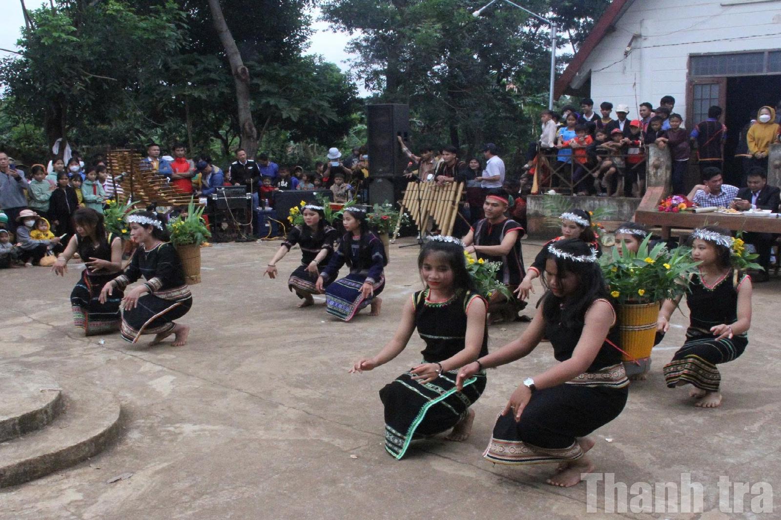 Sau phần lễ trang nghiêm là phần hội rộn ràng, đậm chất Tây Nguyên. Tiếng cồng chiêng vang lên trầm hùng, hòa quyện cùng điệu xoang uyển chuyển của những người phụ nữ Xê Đăng trong trang phục truyền thống. Những vòng người nối dài quanh sân nhà cộng đồng, người già, người trẻ nắm tay nhau trong niềm hân hoan, tạo nên bức tranh sinh động, ấm áp tình làng nghĩa xóm.