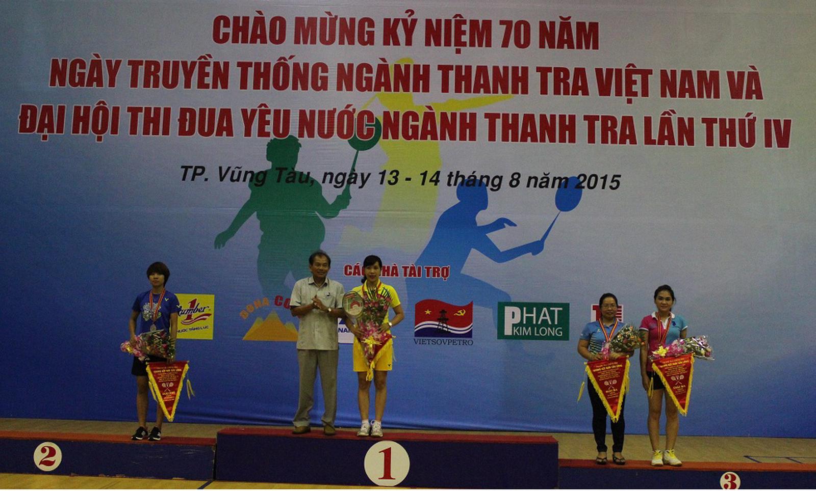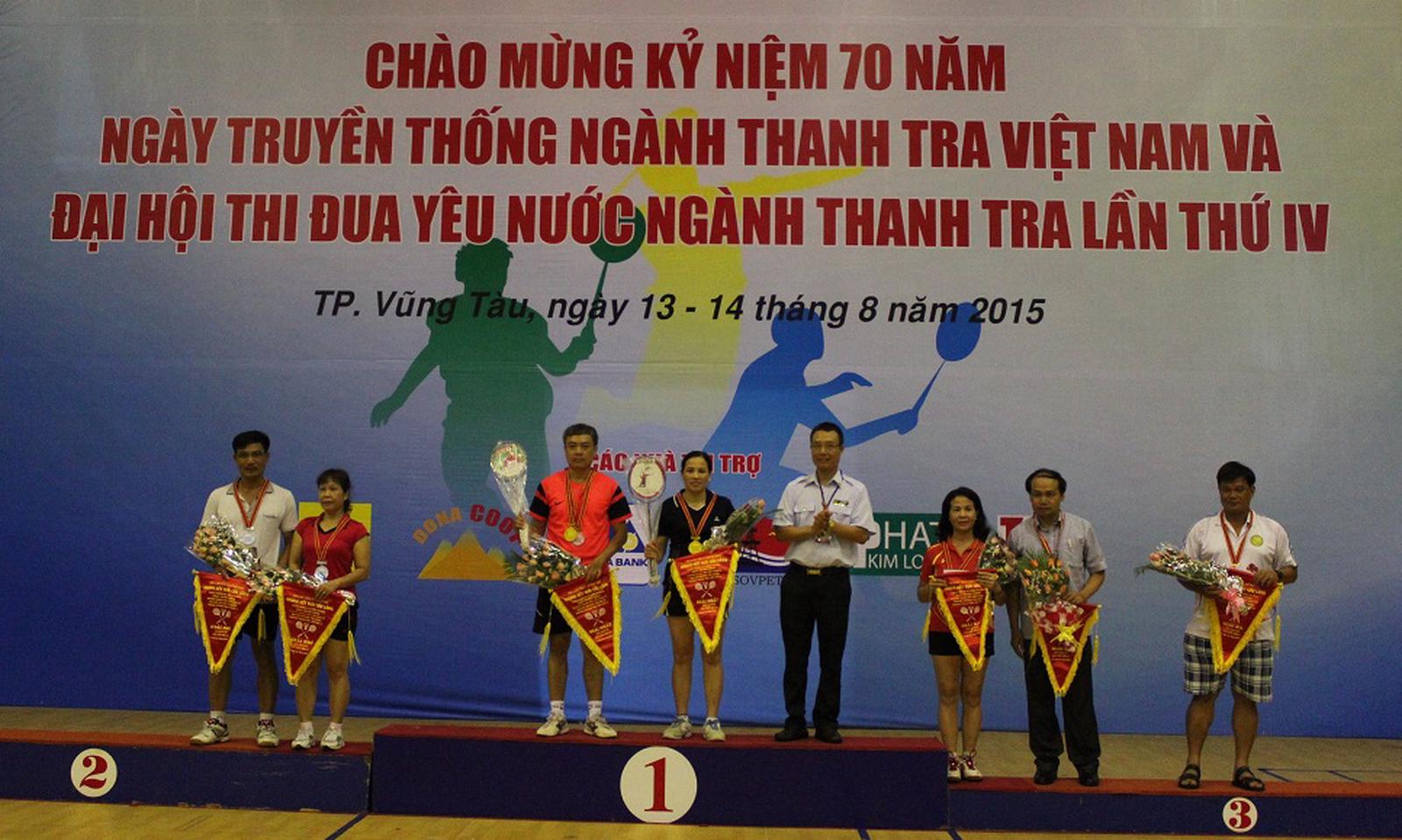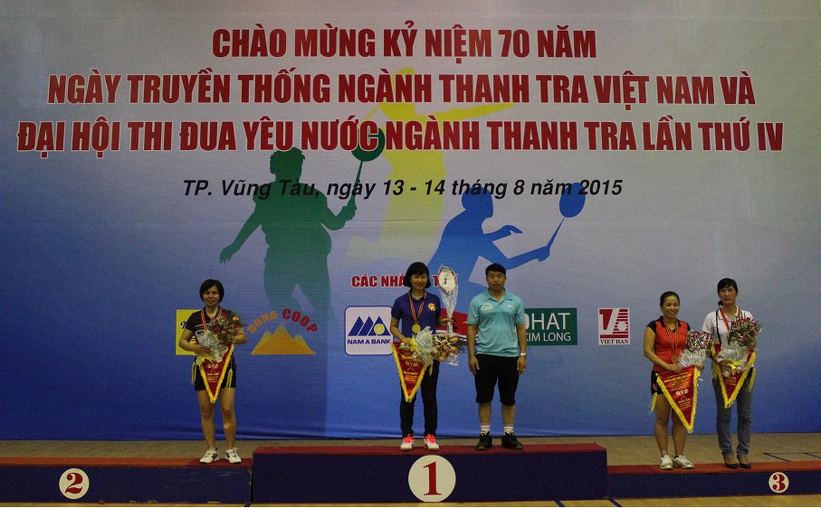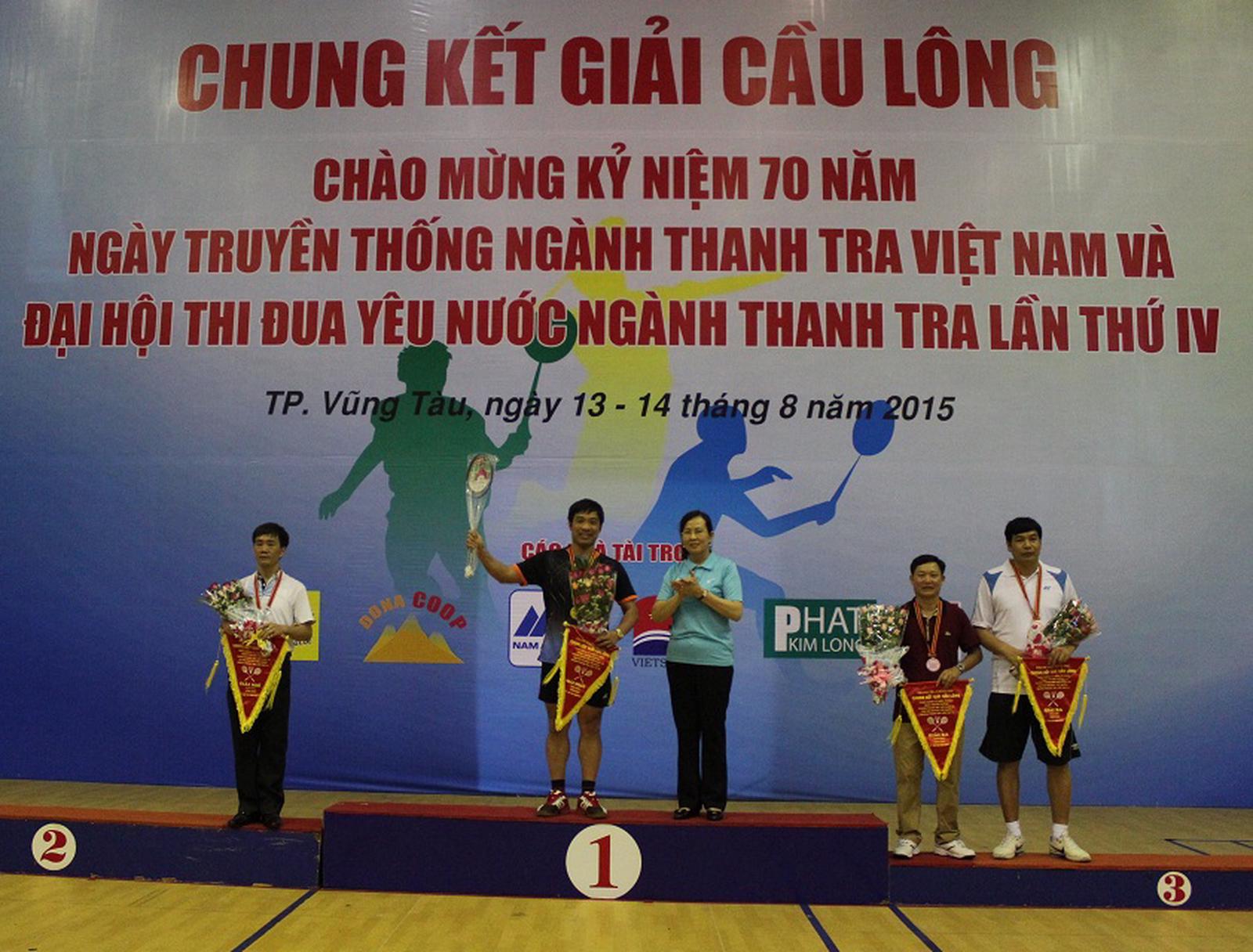 (Thanh tra) - Ngay sau phần phát biểu tại Lễ bế mạc Chung kết giải Cầu lông toàn ngành Thanh tra 2015, Phó Tổng Thanh tra Chính phủ (TTCP) Lê Thị Thủy đã tiến hành trao giải cho các vận động viên (VĐV) có thành tích xuất sắc trong từng nội dung thi đấu.