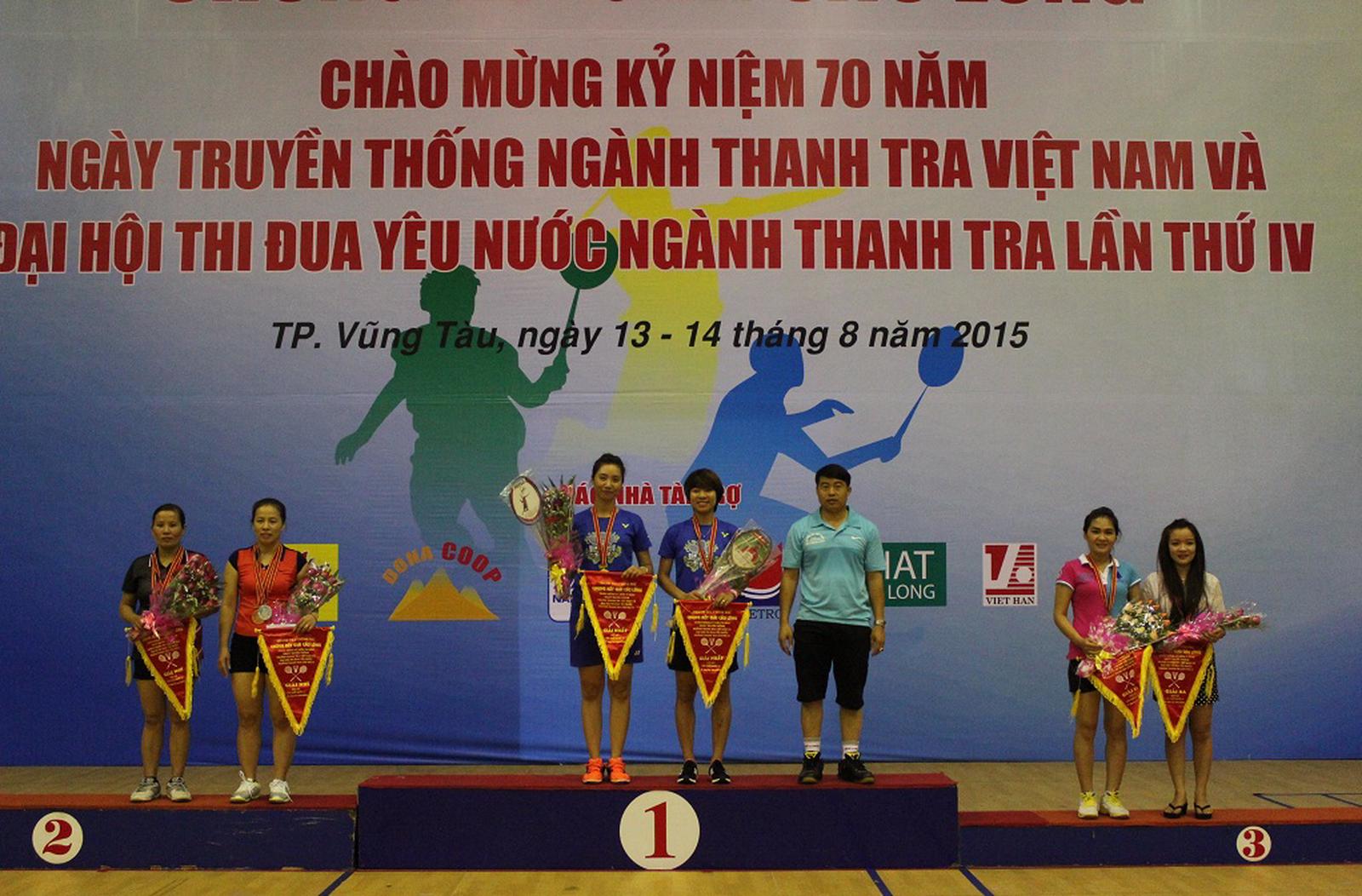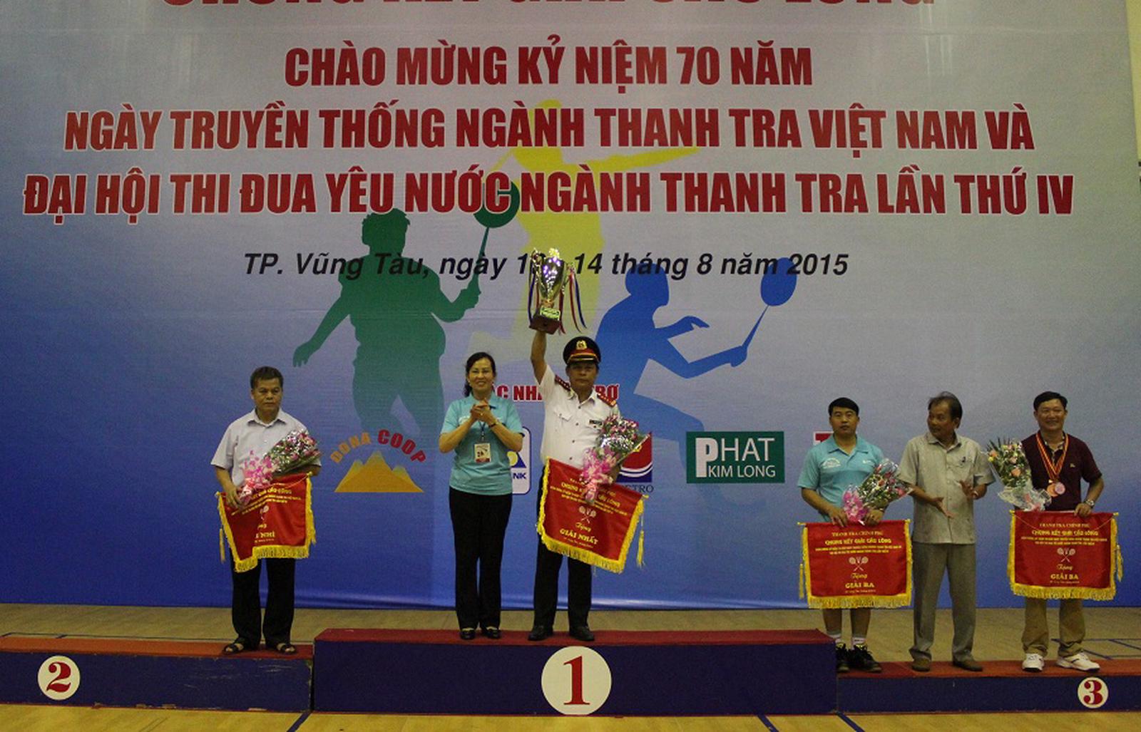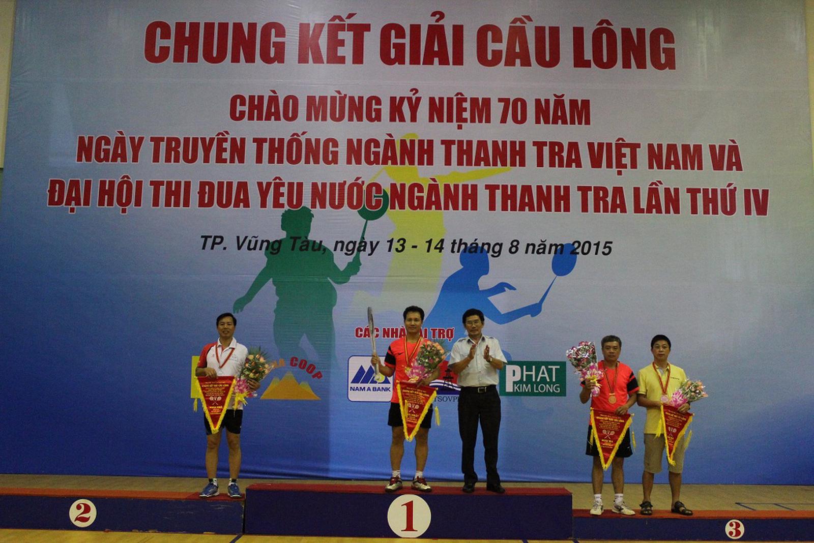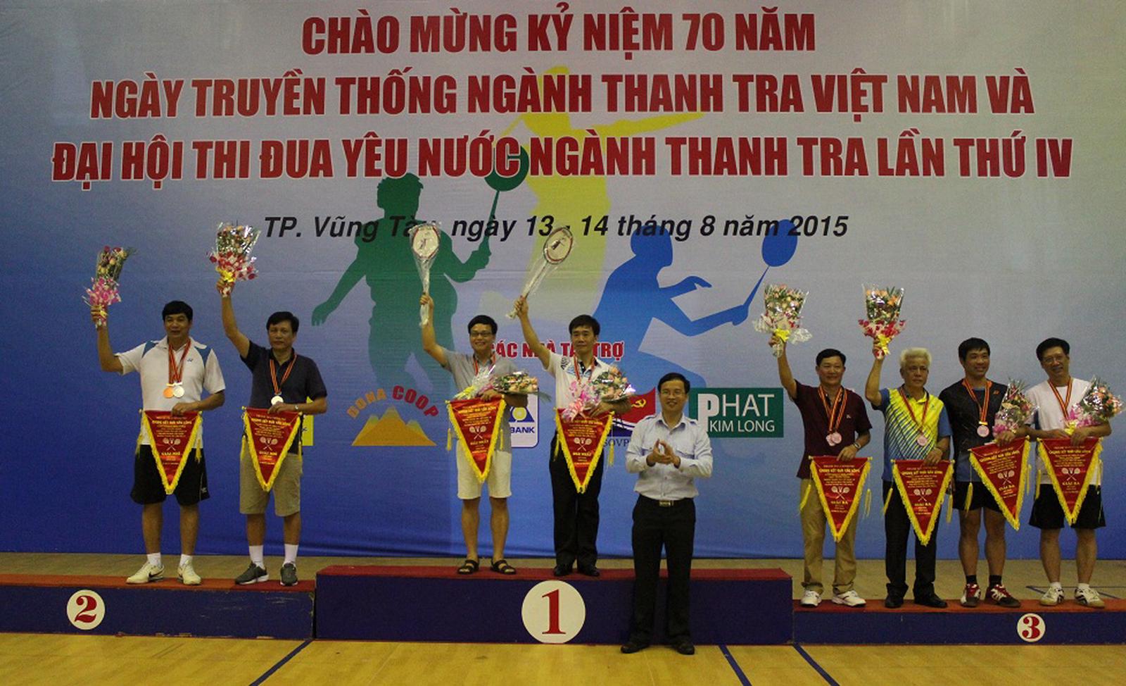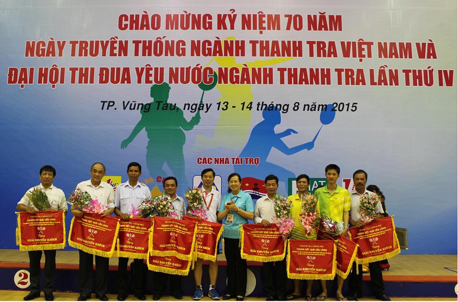 (Thanh tra) - Ngay sau phần phát biểu tại Lễ bế mạc Chung kết giải Cầu lông toàn ngành Thanh tra 2015, Phó Tổng Thanh tra Chính phủ (TTCP) Lê Thị Thủy đã tiến hành trao giải cho các vận động viên (VĐV) có thành tích xuất sắc trong từng nội dung thi đấu.