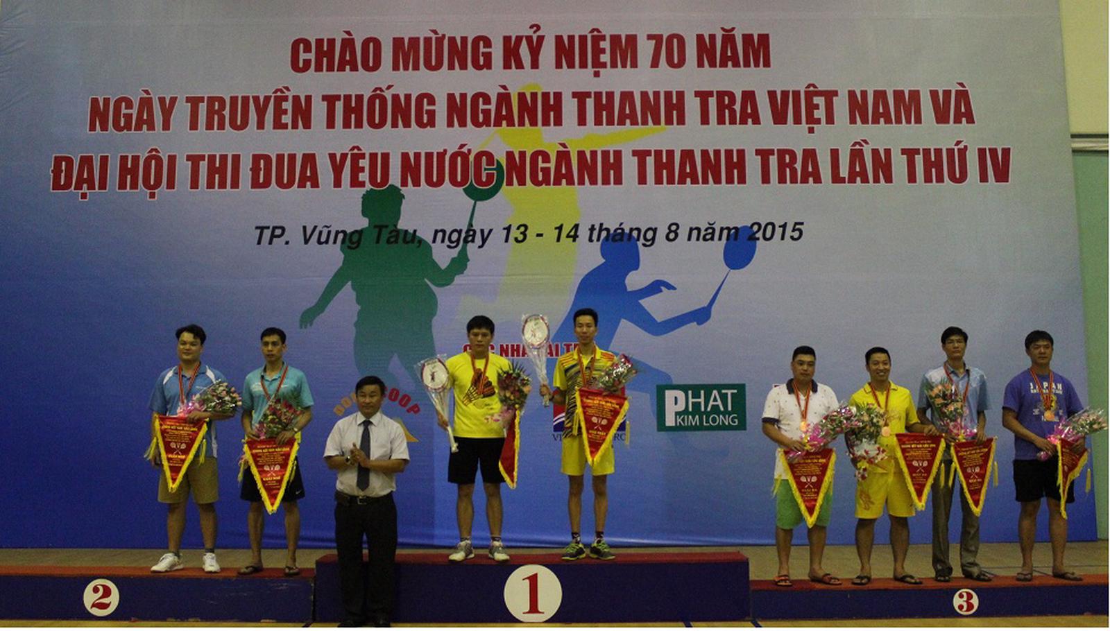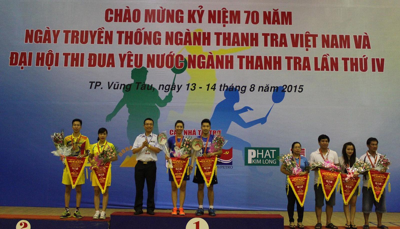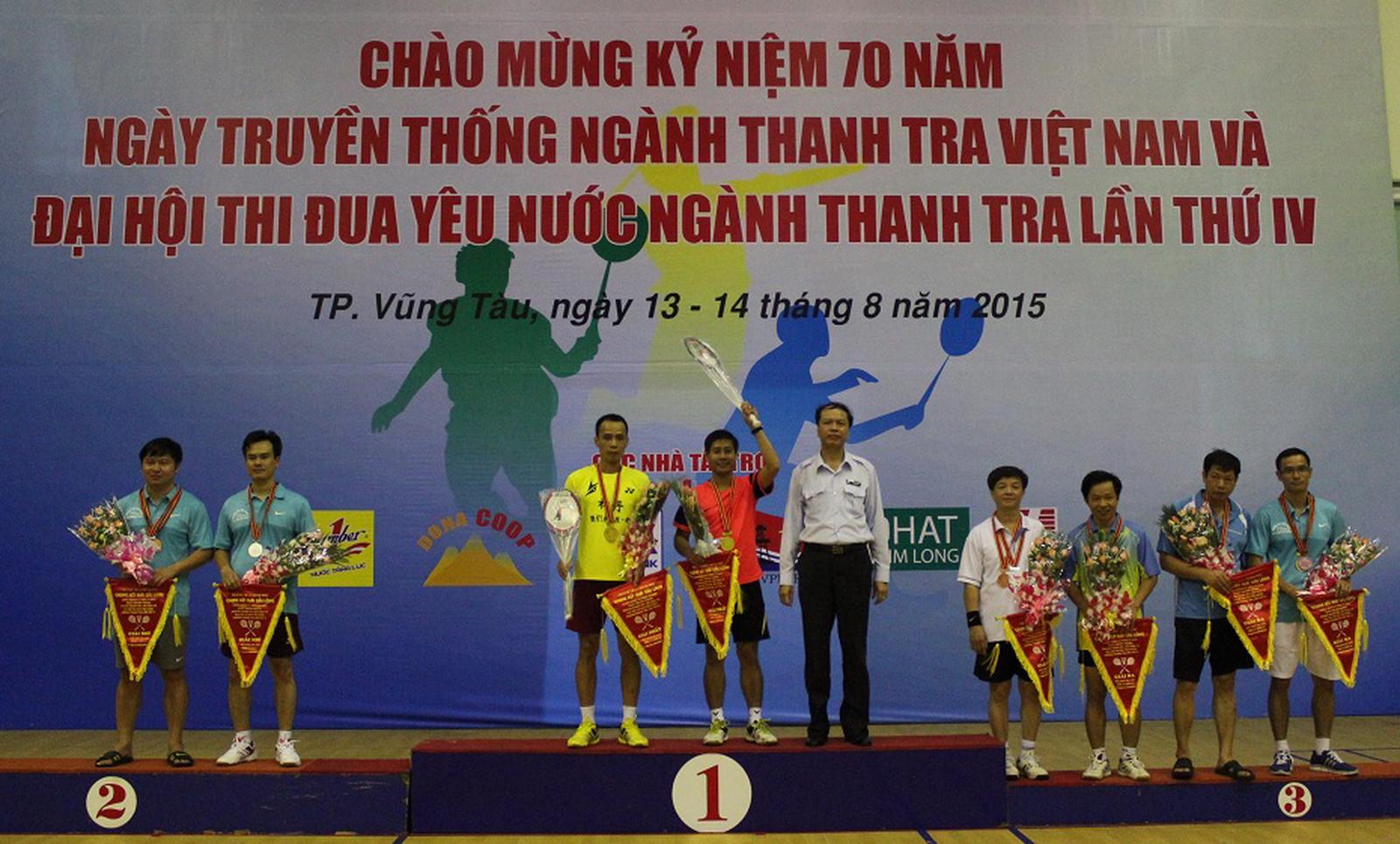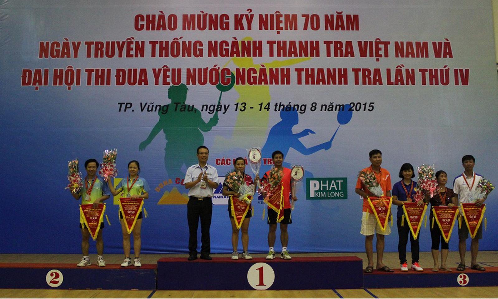 (Thanh tra) - Ngay sau phần phát biểu tại Lễ bế mạc Chung kết giải Cầu lông toàn ngành Thanh tra 2015, Phó Tổng Thanh tra Chính phủ (TTCP) Lê Thị Thủy đã tiến hành trao giải cho các vận động viên (VĐV) có thành tích xuất sắc trong từng nội dung thi đấu.
