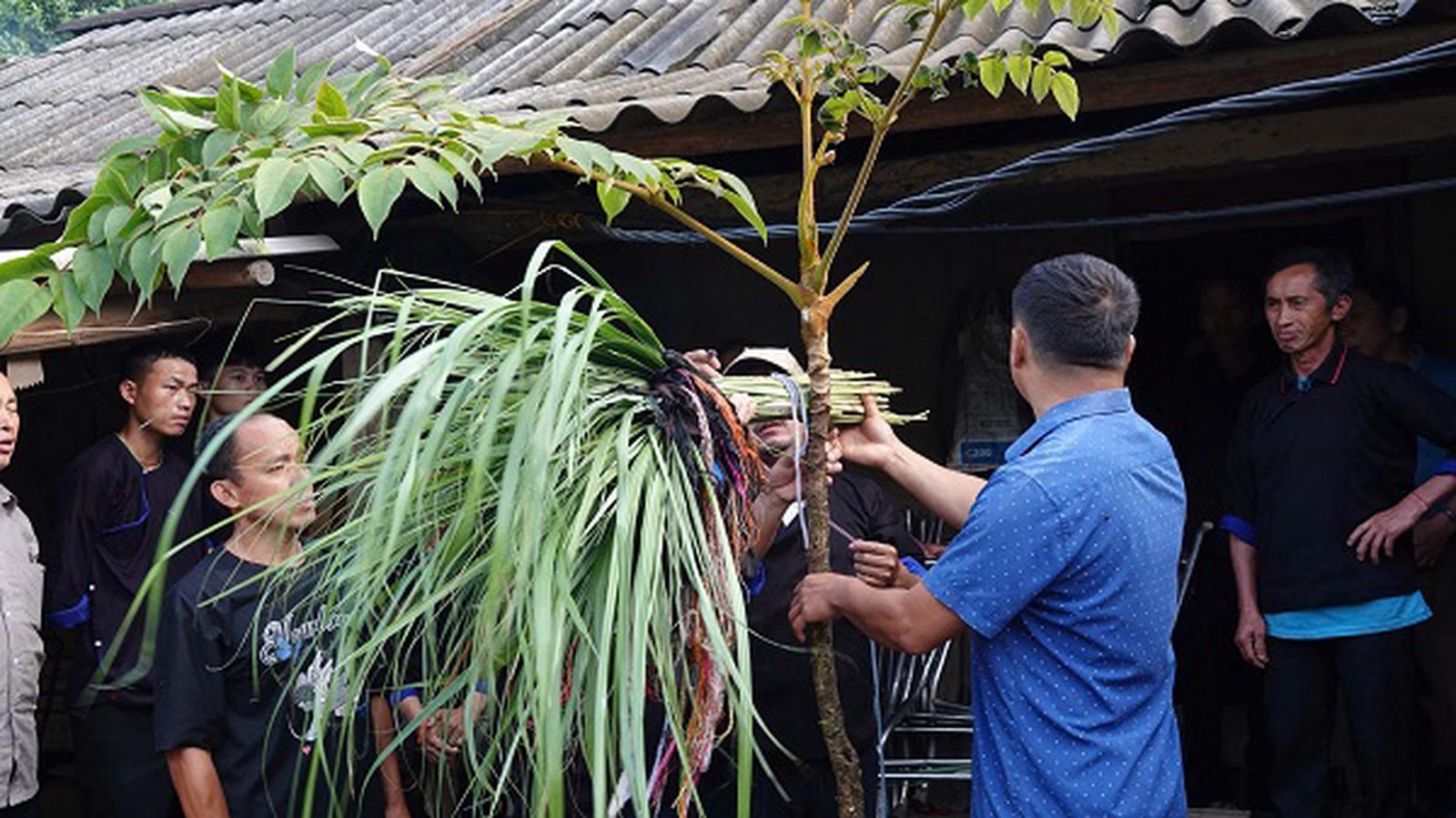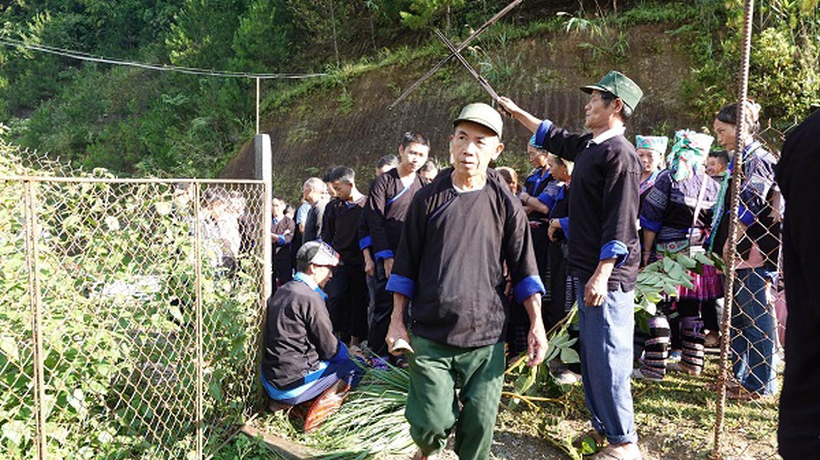 Chủ lễ vác cây đơn châu chấu đi quanh các thành viên trong họ. Ảnh: A Lù
