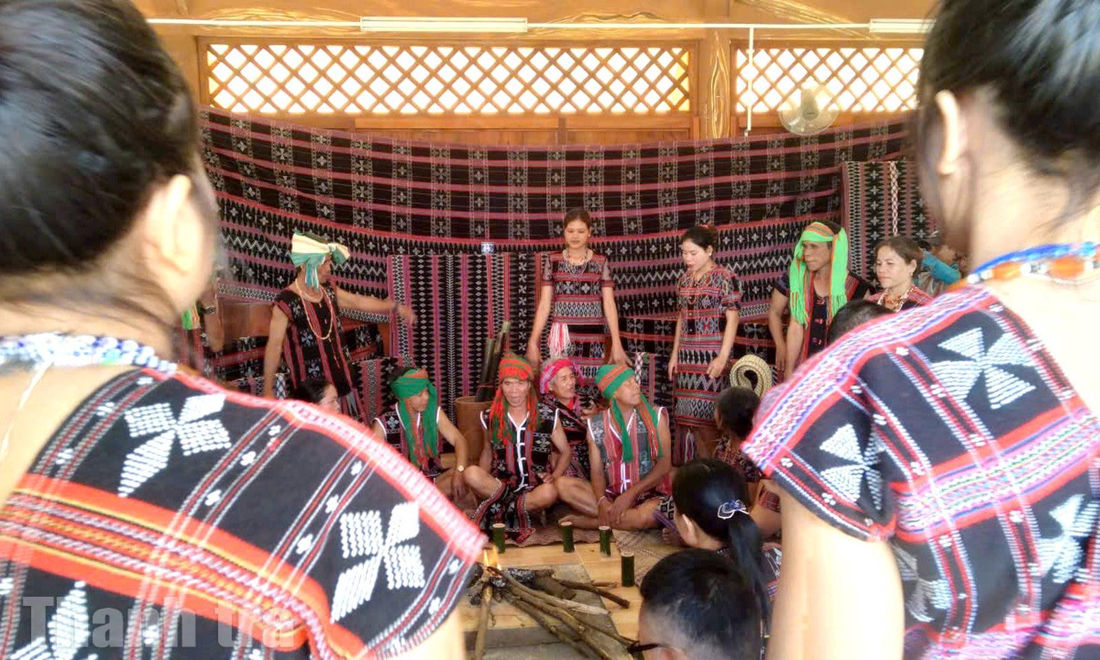 Nghi lễ đón khách vào nhà Roong mới của bà con người Tà Ôi ở làng Kan-vl. Ảnh: Minh Tân