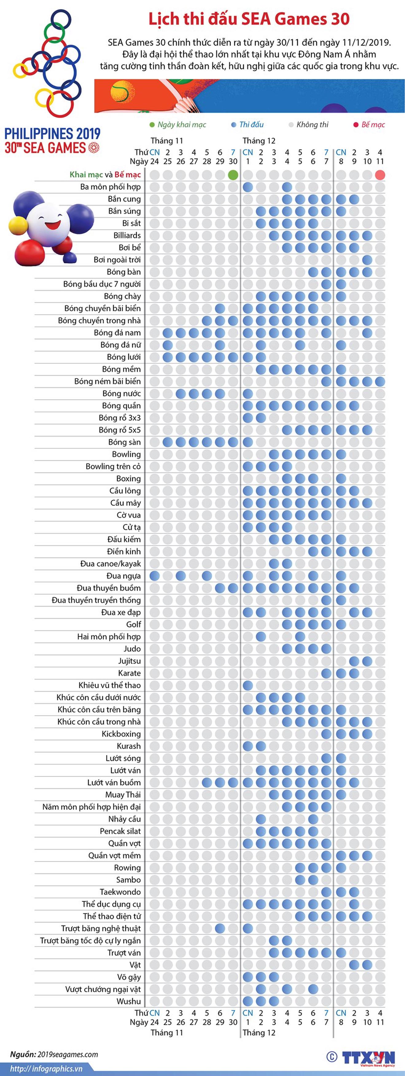 SEA Games 30 chính thức diễn ra từ ngày 30/11 đến ngày 11/12/2019. Đây là đại hội thể thao lớn nhất tại khu vực Đông Nam Á nhằm tăng cường tinh thần đoàn kết, hữu nghị giữa các quốc gia trong khu vực.