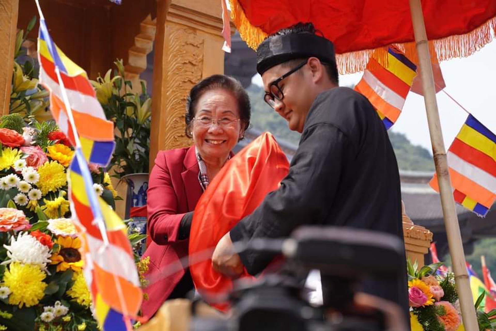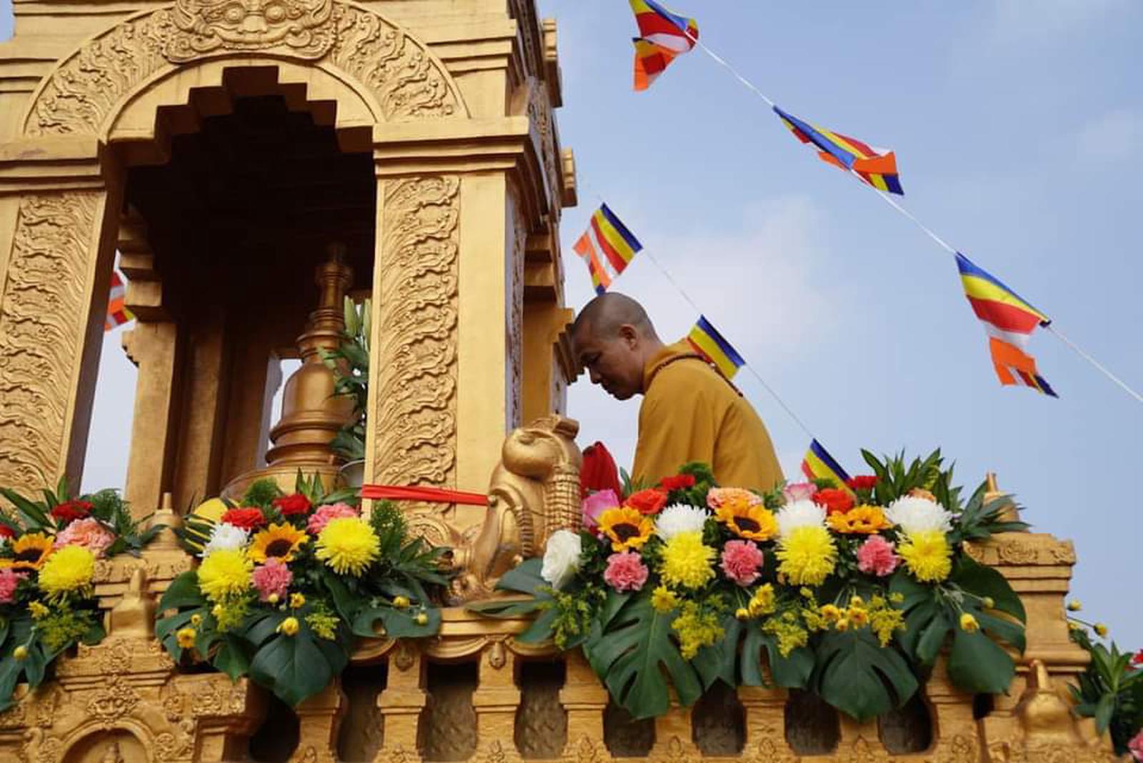 Hoà Thượng tọa Thích Thanh Nhiễu, trụ trì chùa Tam Chúc chủ trì lễ rước nước. Ảnh: TV