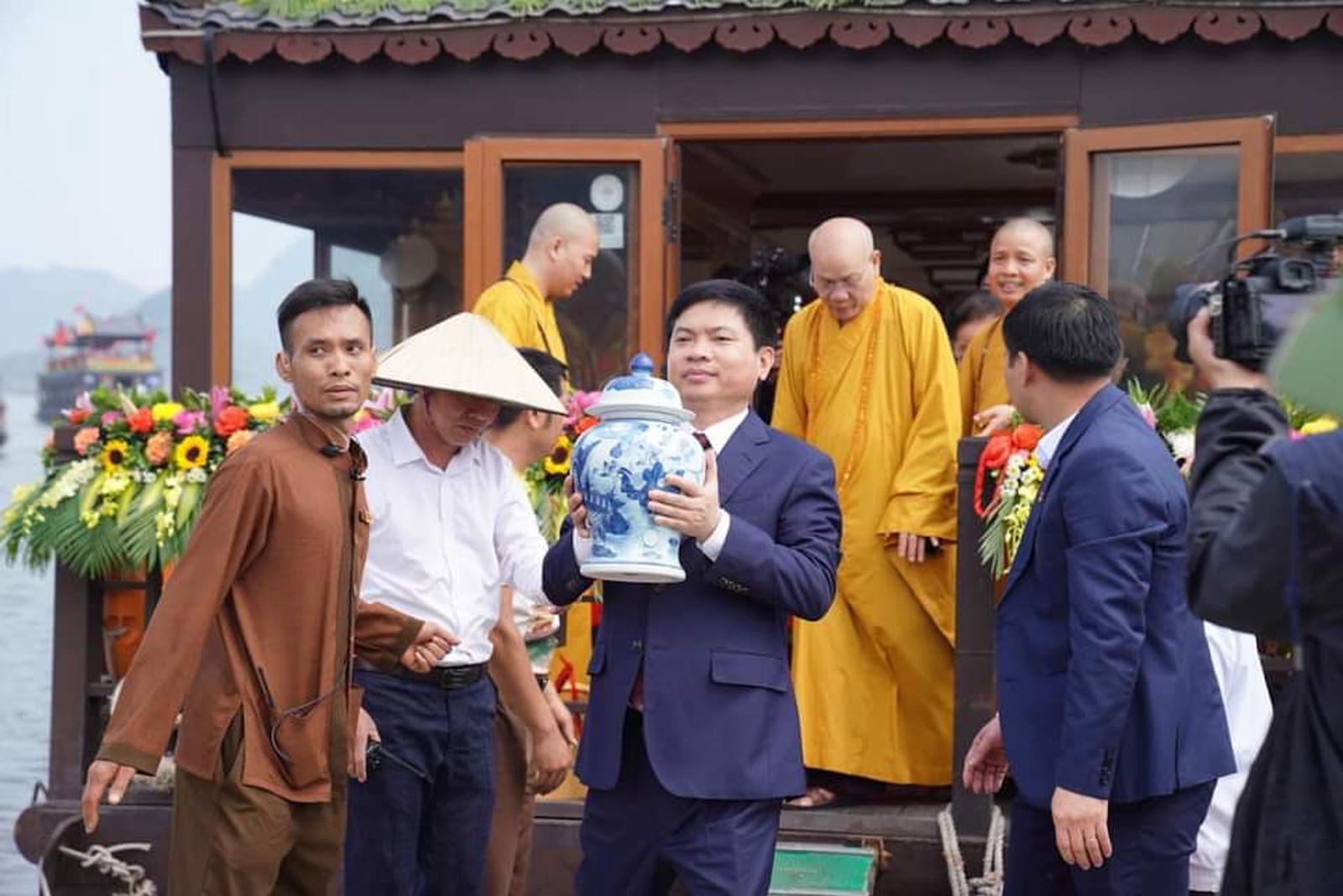 Theo đó, nước được lấy từ nơi sâu nhất trong lòng hồ, là nguồn nước sạch nhất, đổ đầy vào các bình gốm.