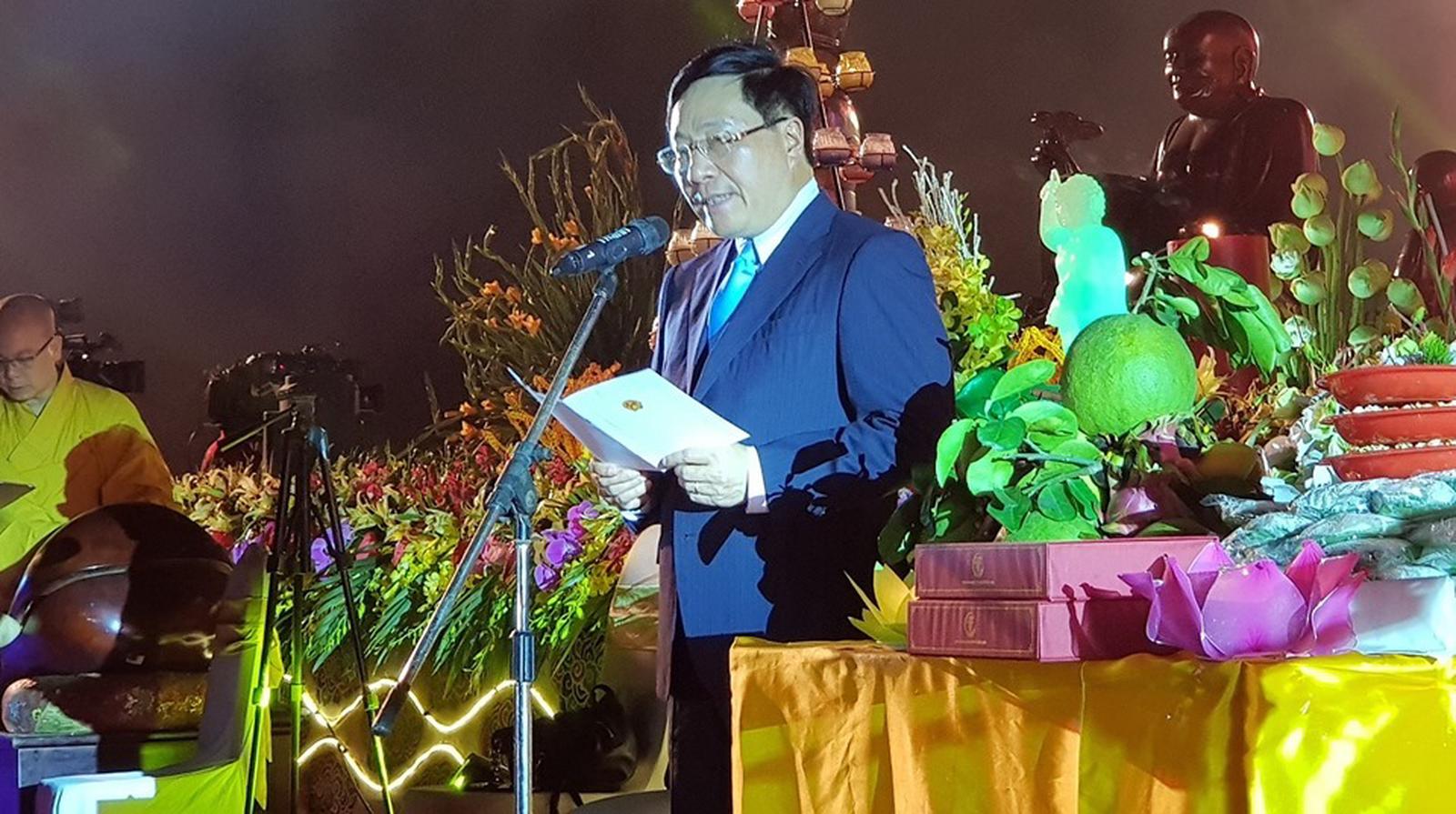 Phát biểu tại đêm hội Hoa đăng, Phó Thủ tướng Phạm Bình Minh gửi tới các vị giáo phẩm, Phật tử Việt Nam và quốc tế lời chúc tốt đẹp trong tình thân ái và hữu nghị.