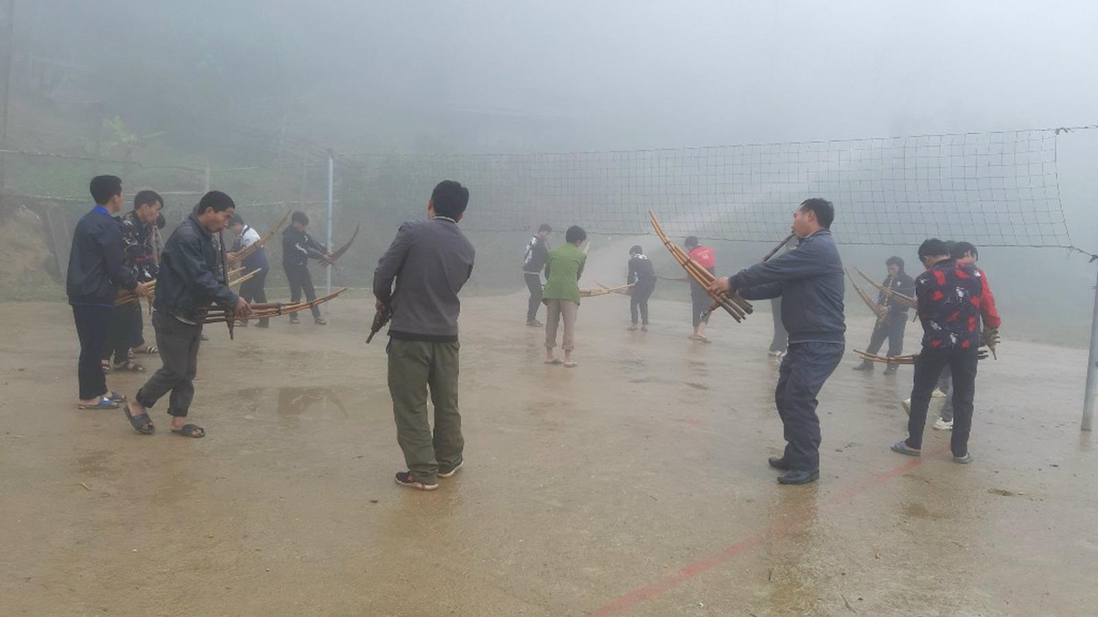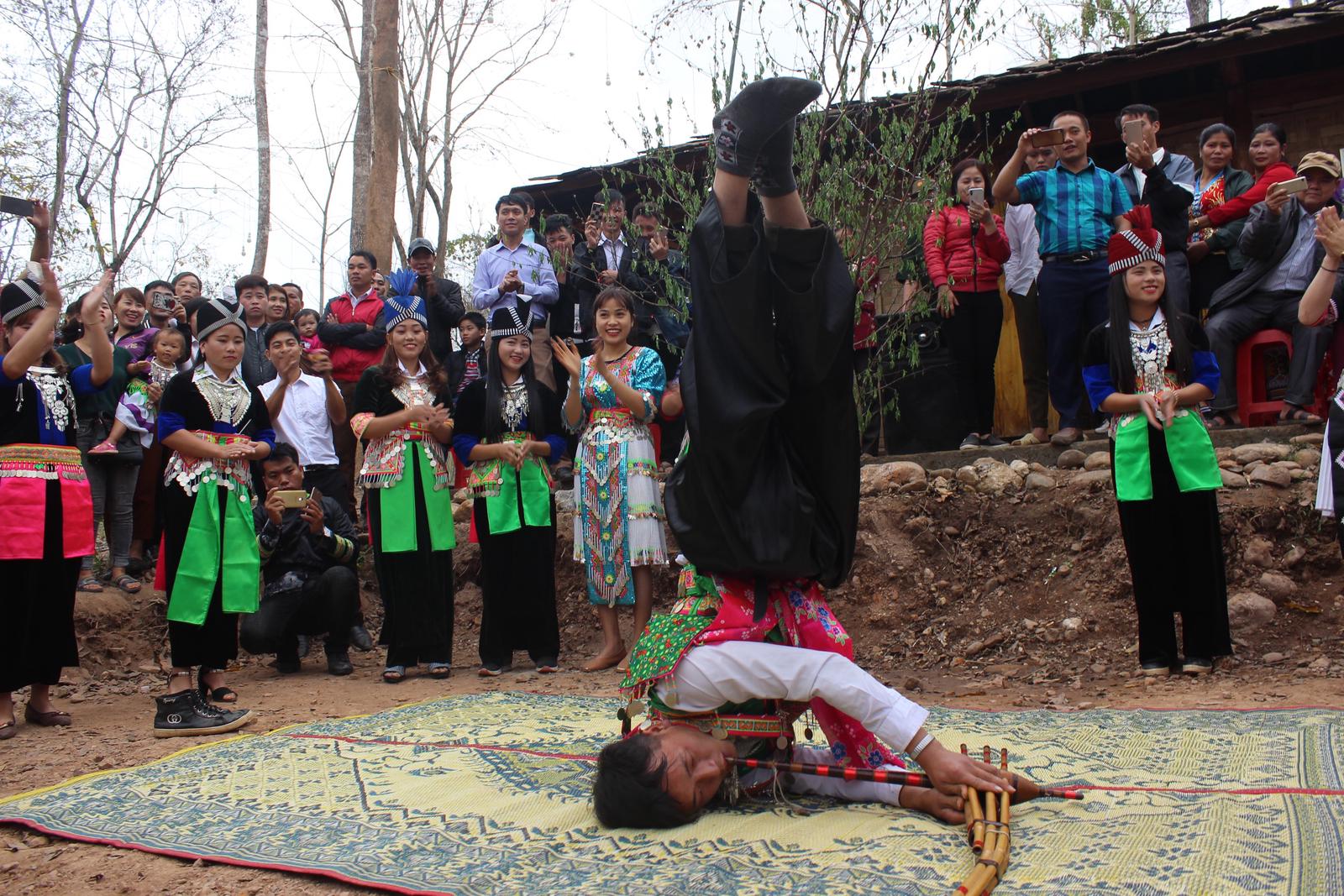 Trong sáng tinh sương, nam thanh nữ tú biểu diễn “đặc sản” khèn Mông. Ảnh: Xuân Thống