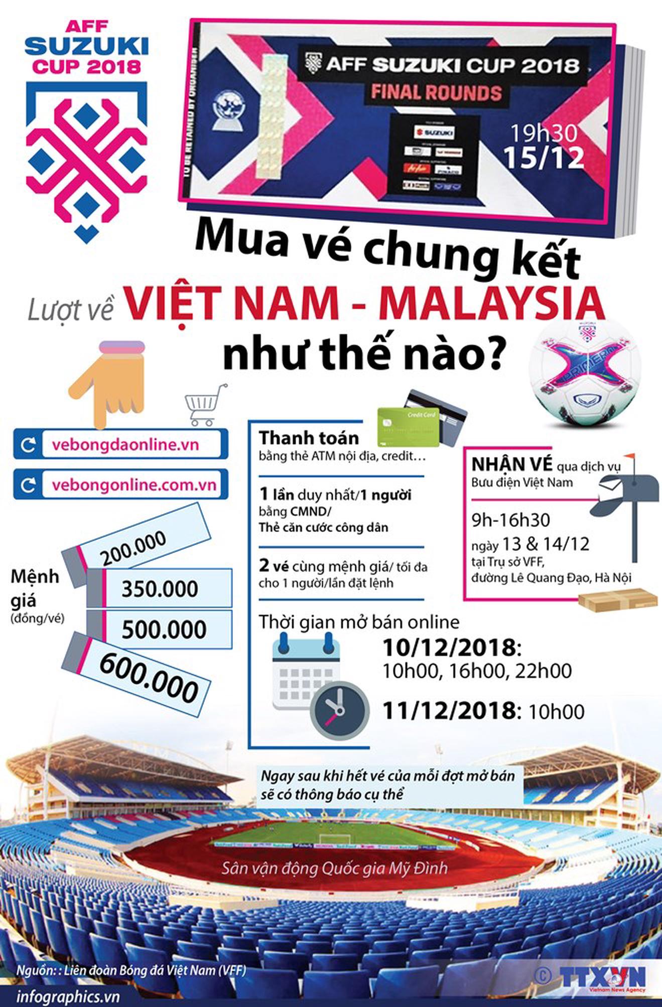 Liên đoàn bóng đá Việt Nam (VFF) chính thức công bố các mức giá và thời điểm mở bán vé xem trận chung kết lượt về AFF Suzuki Cup 2018 giữa Việt Nam và Malaysia tại sân Mỹ Đình vào ngày 15/12./.