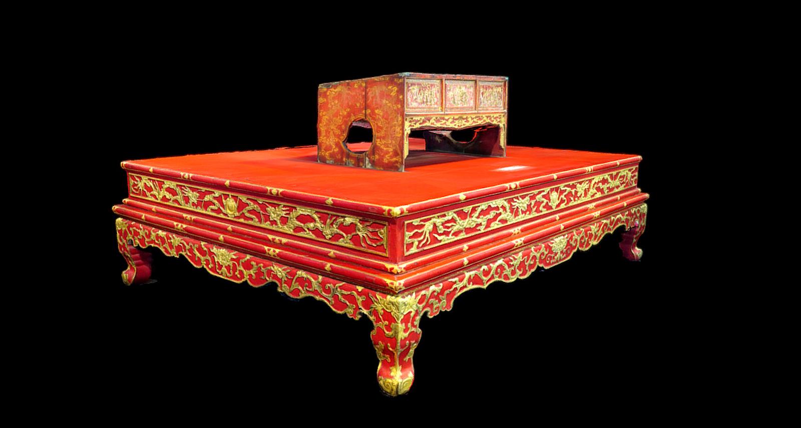 Hình tượng rồng trên sập đặt án thư của vua Tự Đức (trị vì từ năm 1847-1883). Ảnh: Minh Tân