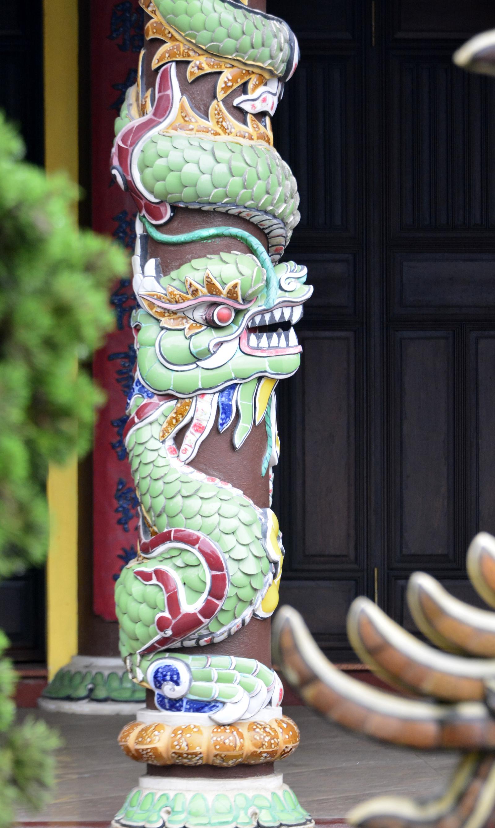 Rồng được đắp nổi trên cột của một nhà thờ tại TP Huế. Ảnh: Minh Tân