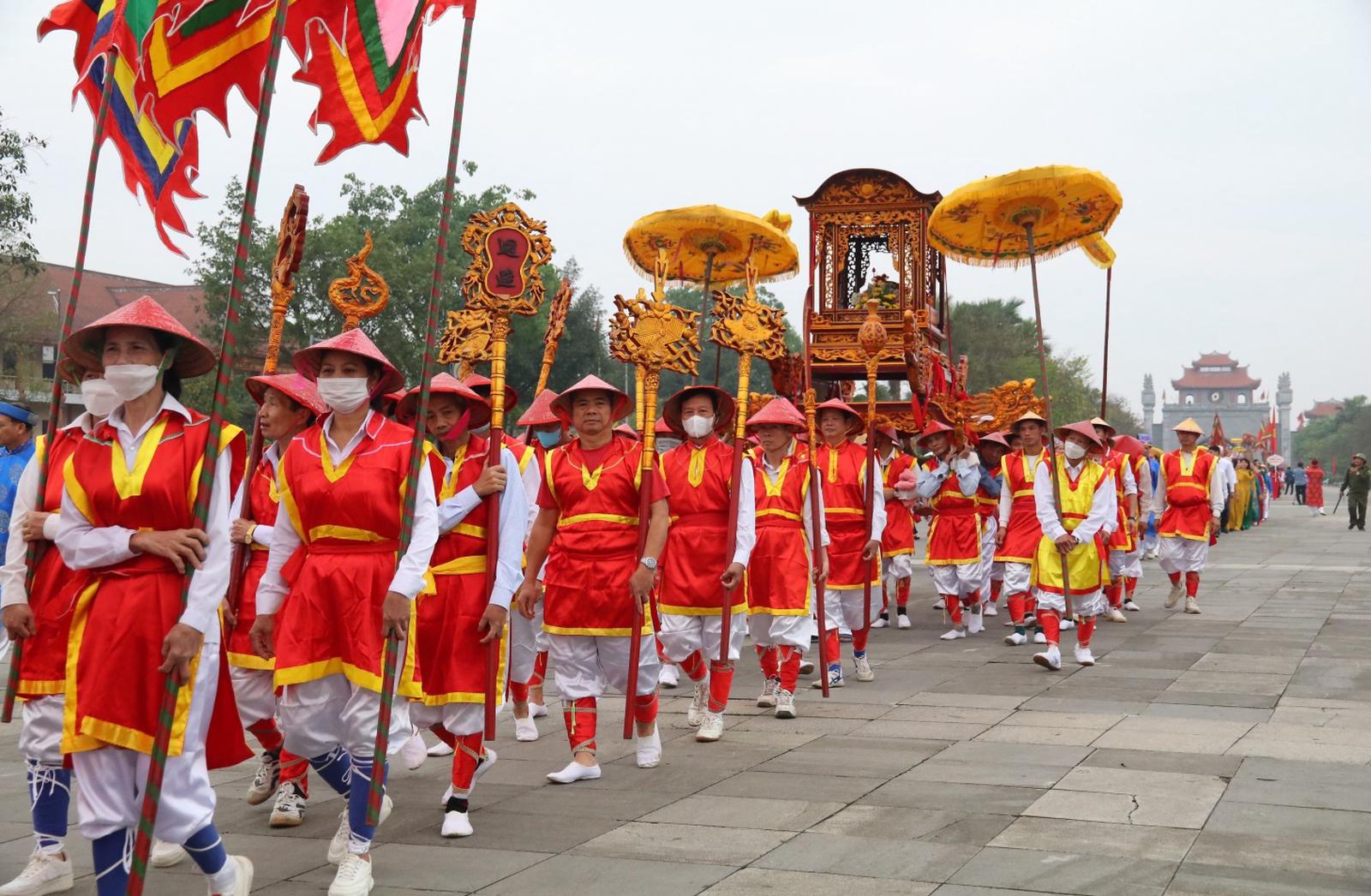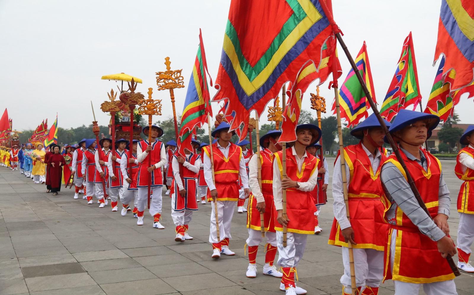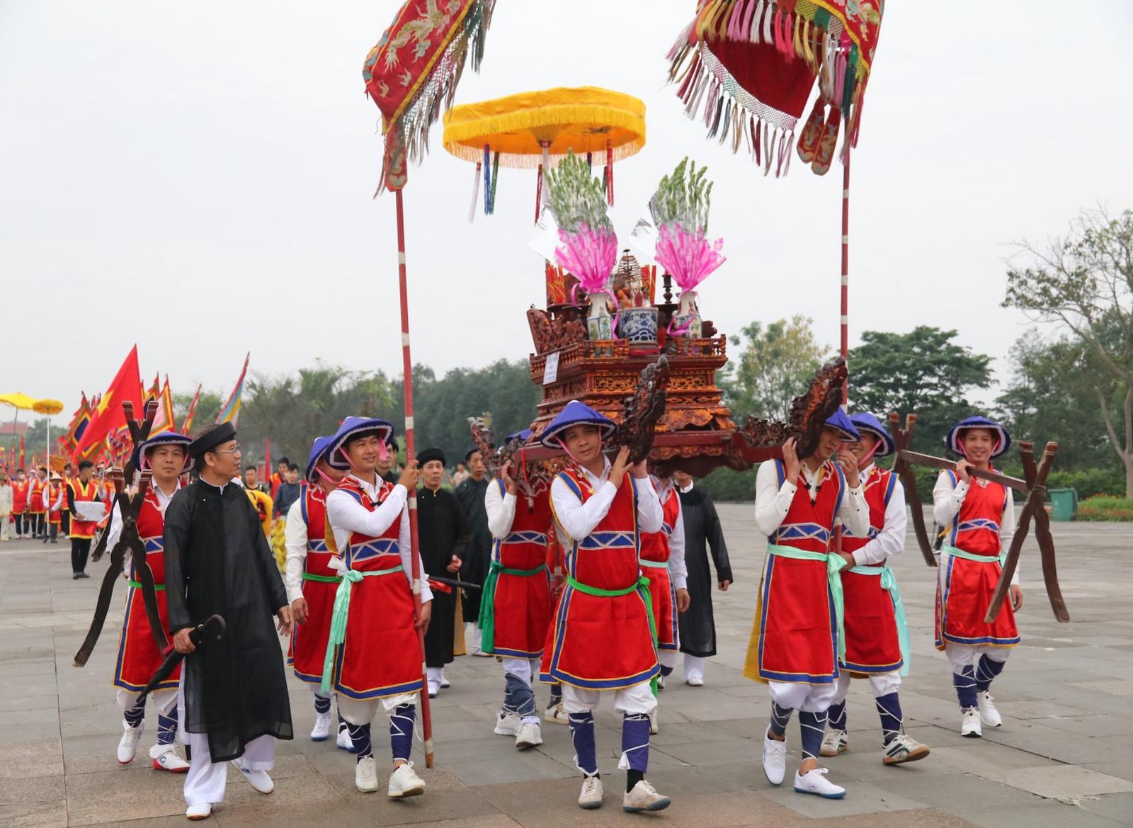 Ông Đức cho biết thêm: “Xã Hùng Lô hiện nay còn lưu giữ được những chiếc kiệu bát cống, kiệu văn có tuổi đời hơn 400 năm (1697). Trong nghi lễ rước kiệu hôm nay, xã chúng tôi còn có cả tấm biển thưởng giành được trong cuộc thi rước kiệu cách đây gần 100 năm”.
