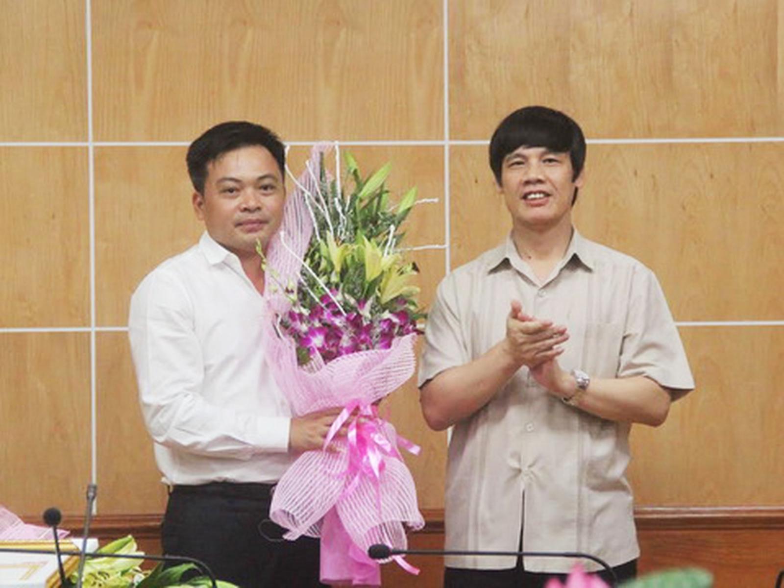 Ông Nguyễn Đình Xứng (phải) tặng hoa chúc mừng Tập đoàn FLC. Ảnh: Hoàn Vinh