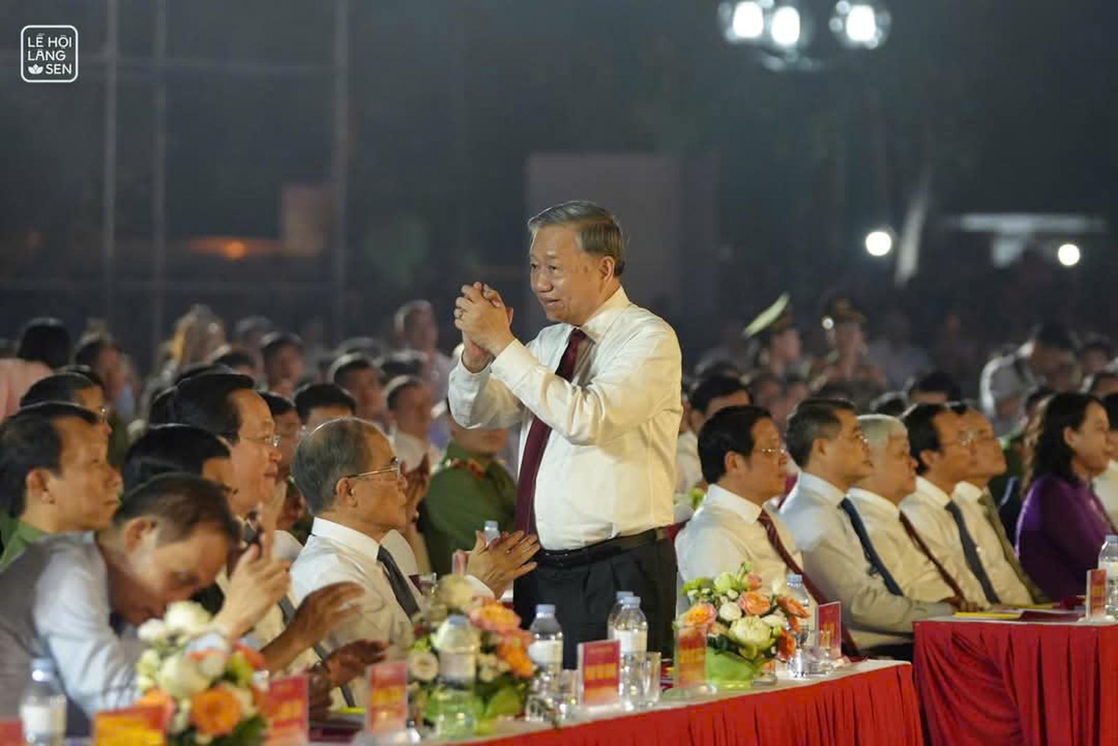 Tổng Bí thư Tô Lâm và các lãnh đạo Đảng, Nhà nước dự Lễ hội Làng Sen năm 2025. Ảnh: P.V