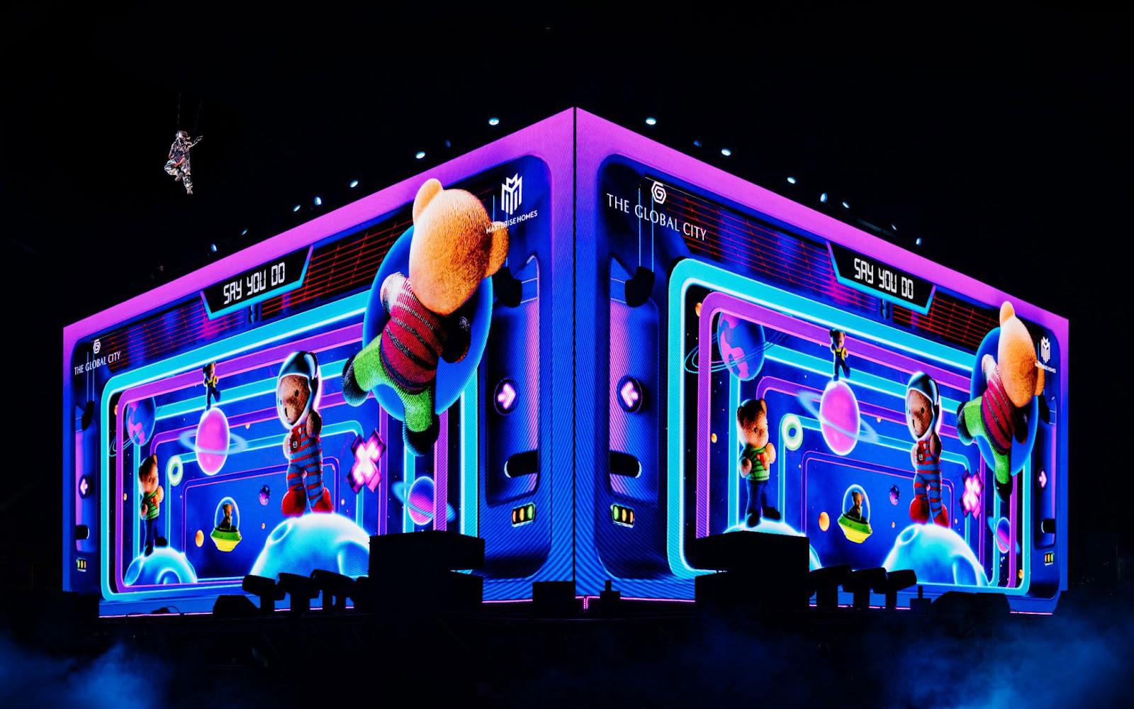 Tiết mục “Người bay phản lực” của Gravity Industries đã làm nóng không khí, châm ngòi cho sự bùng nổ của đêm đại nhạc hội với sự xuất hiện của sân khấu biểu tượng The Global Stage. Ngay tại sự kiện, Tổ chức Kỷ lục Việt Nam đã chứng nhận đây là sân khấu LED lập phương lớn nhất Việt Nam - tiếp nối chuỗi công trình kỷ lục của Tập đoàn Masterise Homes.