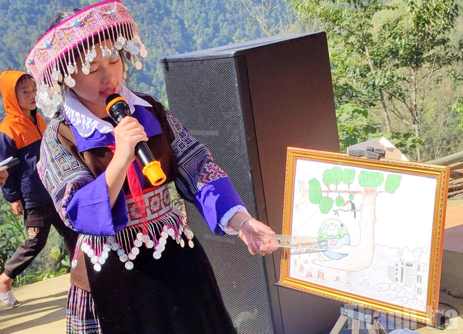 Học sinh nữ người Mông xã Chế Tạo tự tin thuyết trình, khẳng định vai trò và vị thế mới của phụ nữ trong giáo dục. Ảnh: Bình Yên