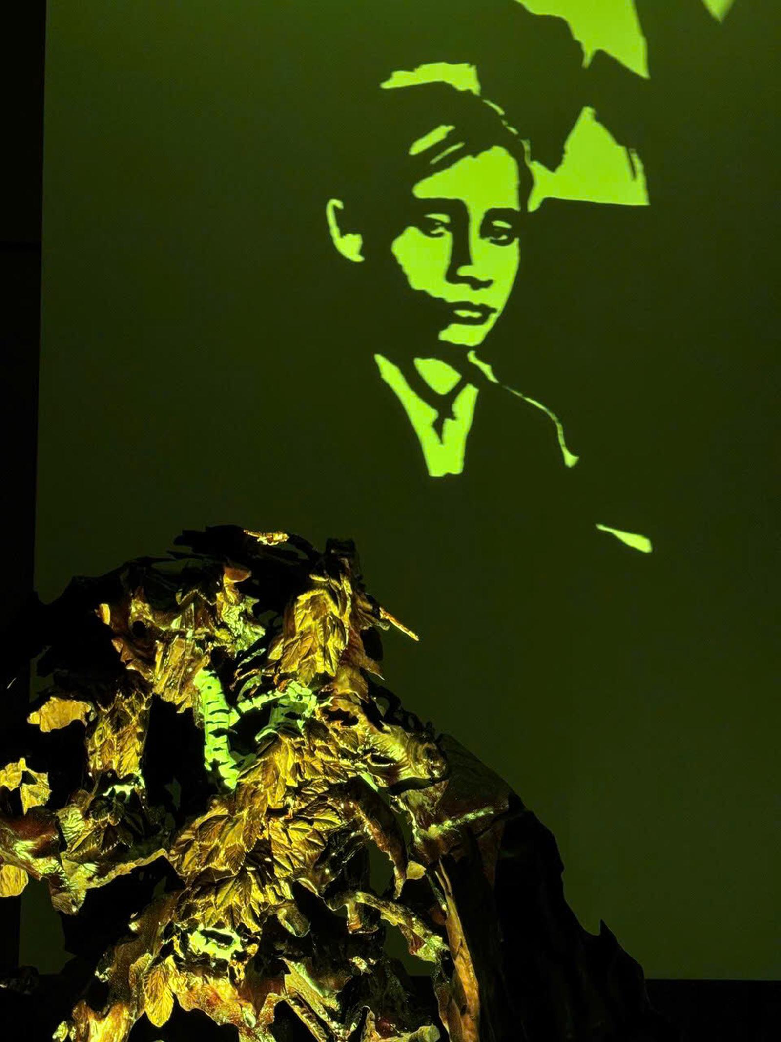 Chân dung thời trẻ của Tổng thống Putin được tái hiện trong tác phẩm điêu khắc ánh sáng “Nước Nga vĩ đại”. Ảnh: Hà Phương
