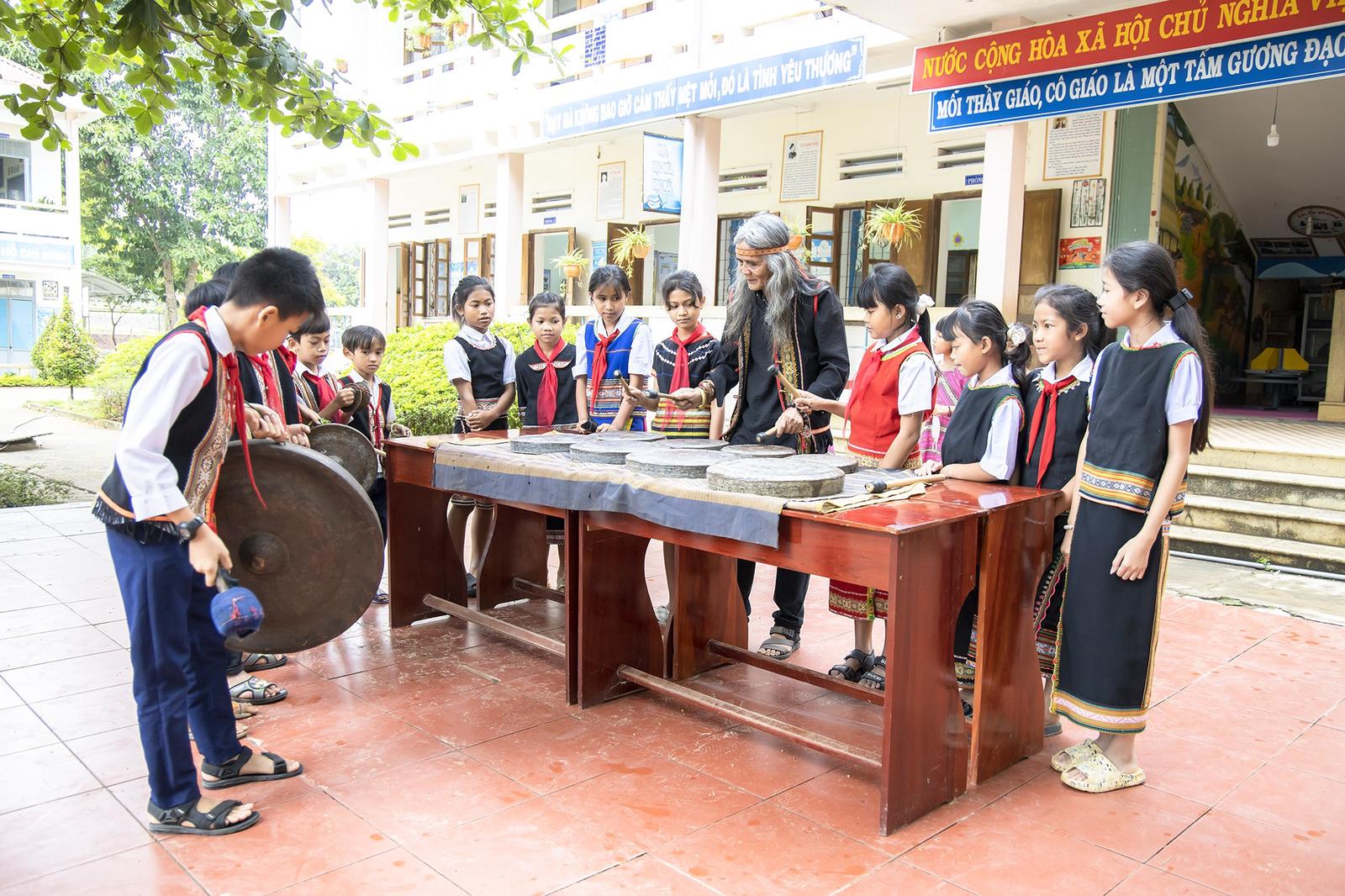 Nghệ nhân A Biu giúp thế hệ trẻ phát huy giá trị văn hóa dân tộc. Ảnh: Thúy Hạnh