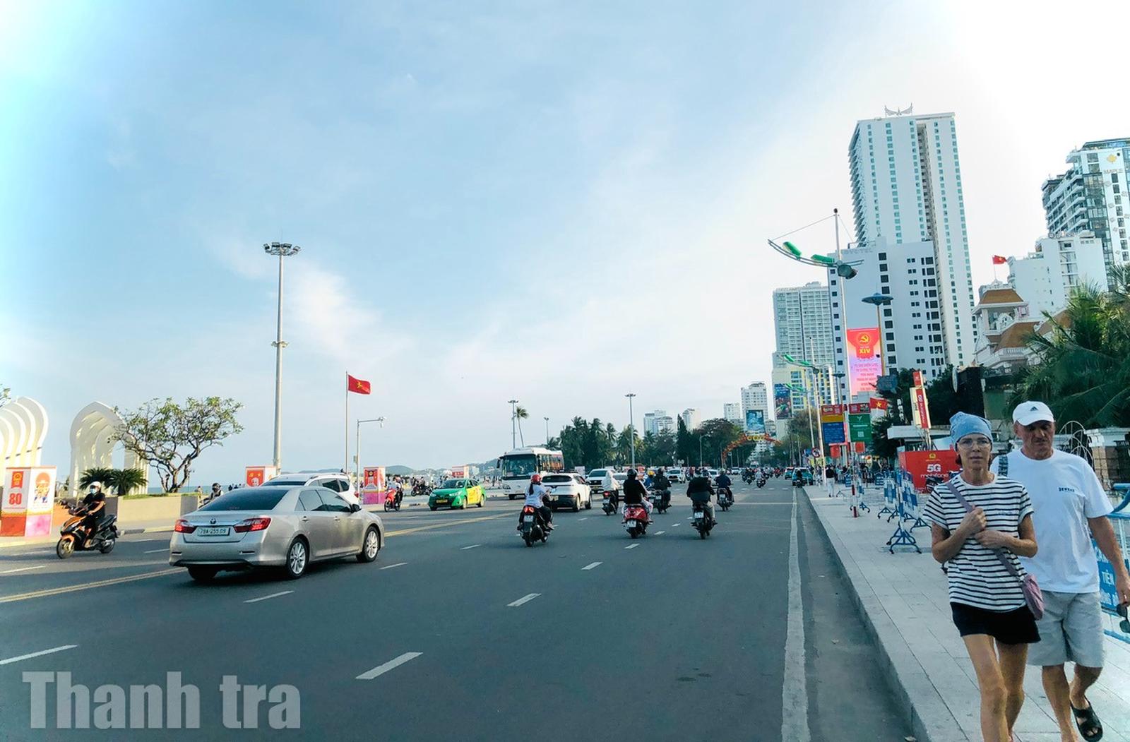 Phía xa là khu du lịch Vinpear, nhìn từ đường bờ biển Trần Phú, Nha Trang. Ảnh Minh Nghĩa
