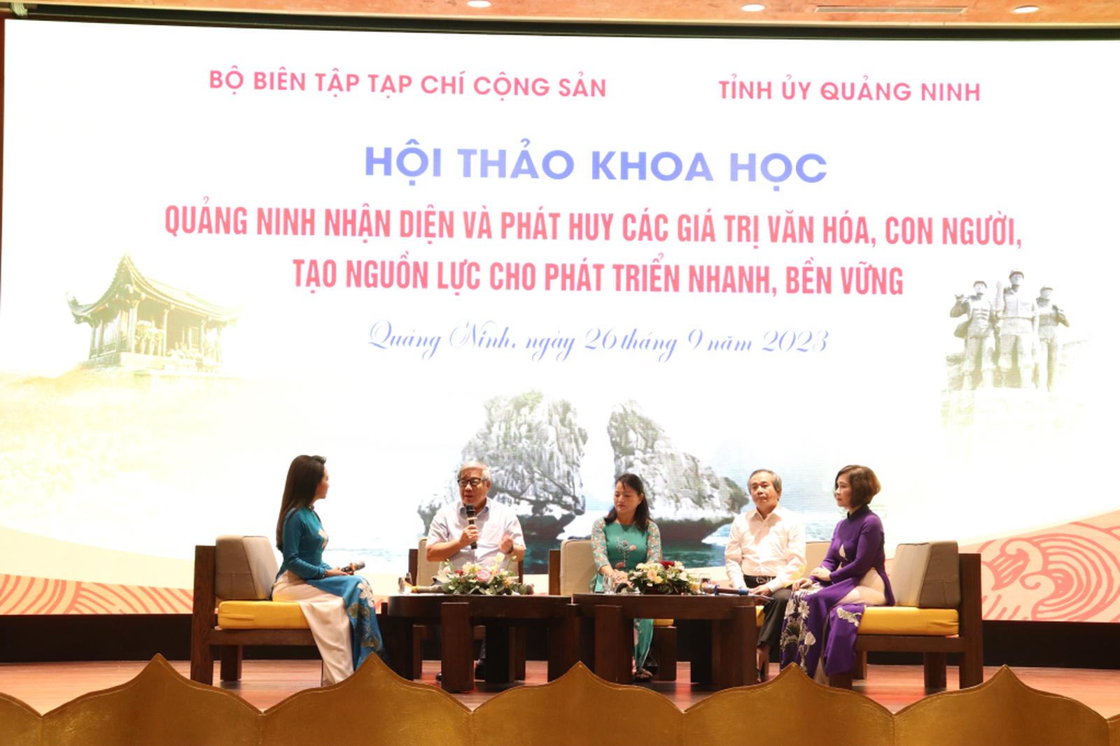 Phát biểu đề dẫn hội thảo, PGS.TS Nguyễn Minh Tuấn, Phó Tổng Biên tập phụ trách Tạp chí Cộng sản nhấn mạnh, Quảng Ninh là địa phương có lịch sử hình thành và phát triển gắn liền với quá trình xây dựng và bảo vệ đất nước. Con người Quảng Ninh cũng thể hiện những đặc trưng chung, đó là lòng yêu nước, ý chí tự cường dân tộc, tinh thần đoàn kết, ý thức cộng đồng, kết hợp với bản sắc rất riêng. Vùng đất này cũng được coi là “cái nôi” của giai cấp công nhân Việt Nam với truyền thống “Kỷ luật và Đồng tâm".