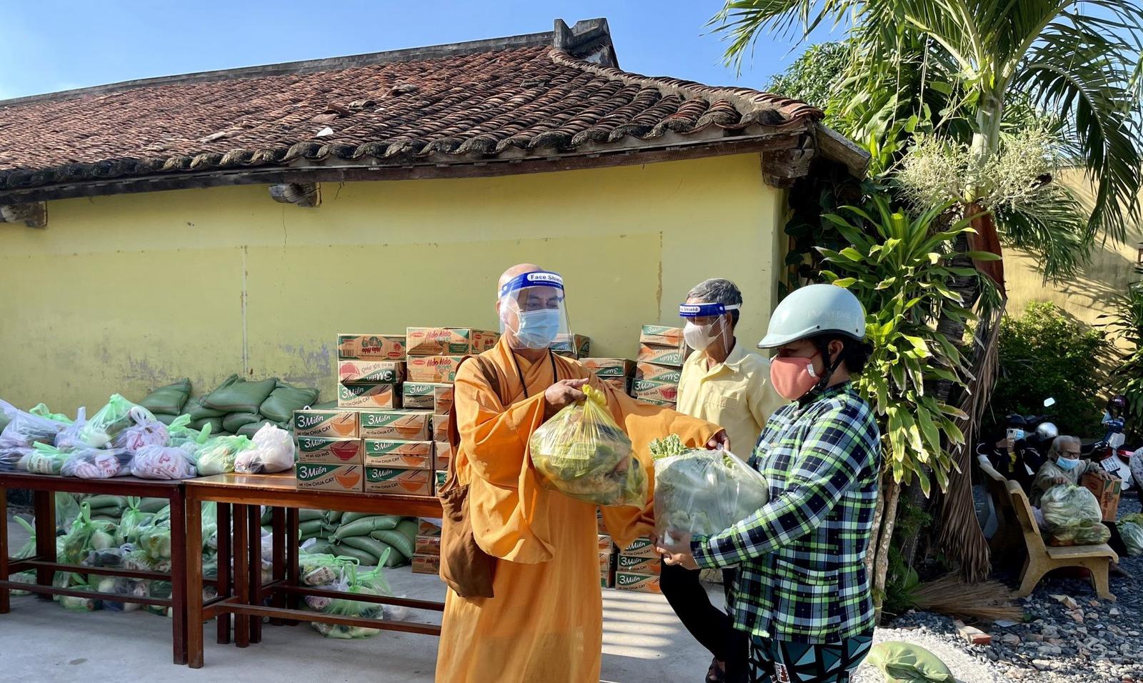 Ngày 21/8, Thượng tọa Thích Phước Nghiêm tiếp tục tổ chức phiên chợ "Nghĩa tình quân - dân", trao 25 tấn rau, củ, quả, 3,5 tấn gạo và 300kg đường, 300kg bột nêm, 300kg bột ngọt, 300 lít dầu ăn, 900 chai nước mắn, 600 chai nước tương và các nhu yếu phẩm khác đến cho bà con 2 xã Thạnh Lộc và Mỹ Thành Bắc.