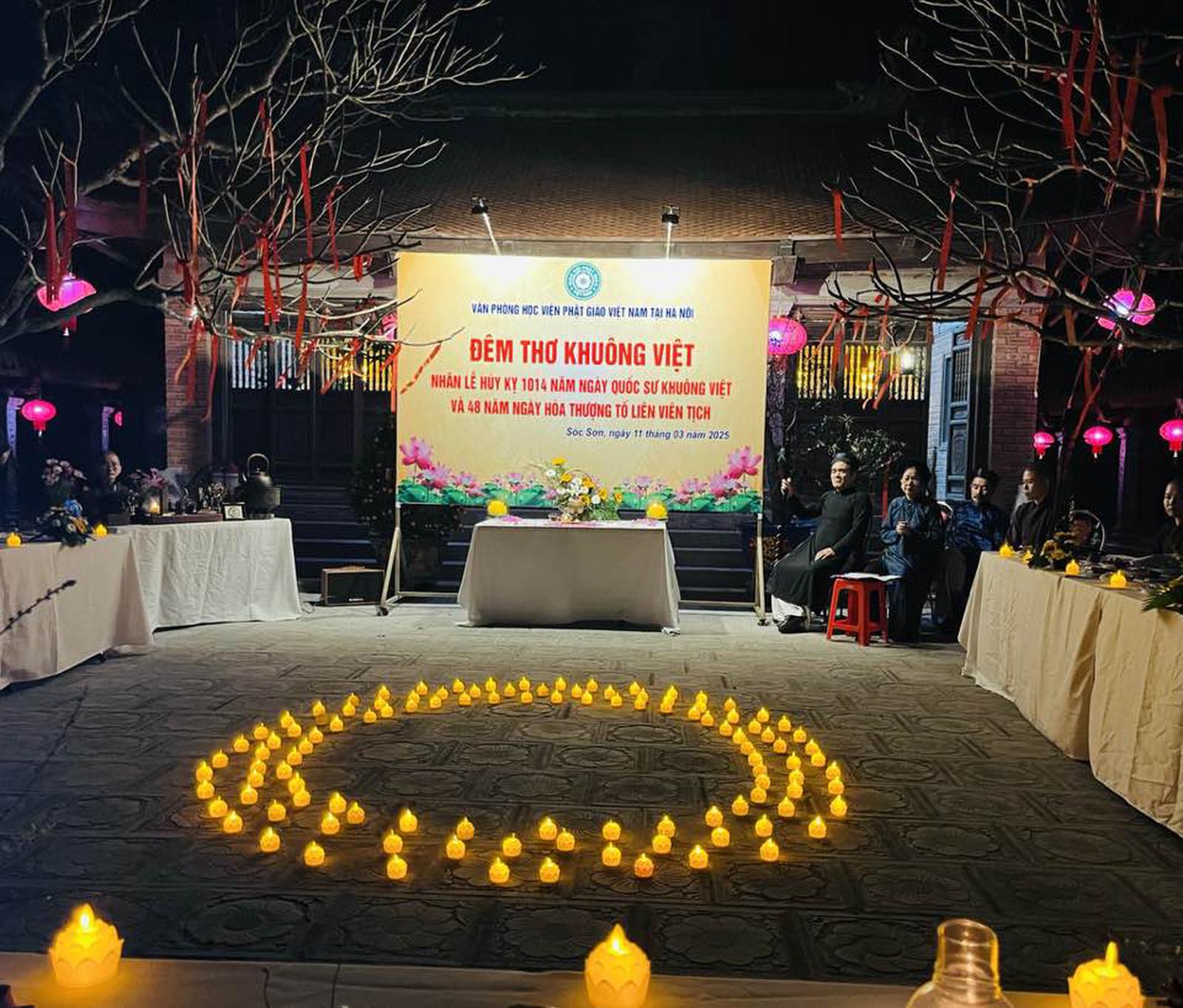 Trước đó, tối 11/3, tại Học viện Phật giáo Việt Nam tại Hà Nội diễn ra chương trình giao lưu đêm thơ nhân lễ huý kỵ 1014 năm ngày Quốc sư Khuông Việt (15/2 năm Thuận Thiên thứ 2 (1011) - 15/2 năm Ất Tỵ 2025) và 48 năm ngày Hoà thượng Tố Liên viên tịch.