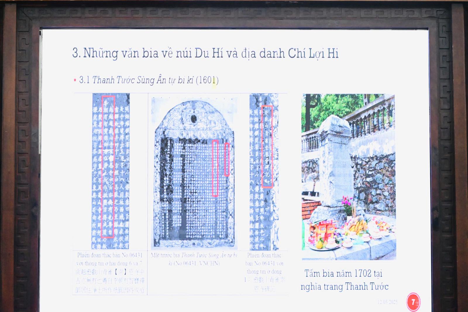 Trong đó, ThS. Nguyễn Đình Hưng - Viện Triết học, Viện Hàn lâm KHXH Việt Nam với tham luận “Núi Du Hí, hương Cái Lợi: góp thêm tư liệu về quê hương của Đại sư Khuông Việt" đã đưa ra các cứ liệu lịch sử chứng minh qua Thiển uyển Tập anh và Báo ân Tự bi ký, dựa vào các tư liệu địa phương, những địa danh gắn với thiền sư Khuông Việt nằm ở khu vực Mê Linh-Phúc Yên-Sóc Sơn phù hợp với ghi chép về hướng cát lợi ở Bắc Giang trong Toàn thư.