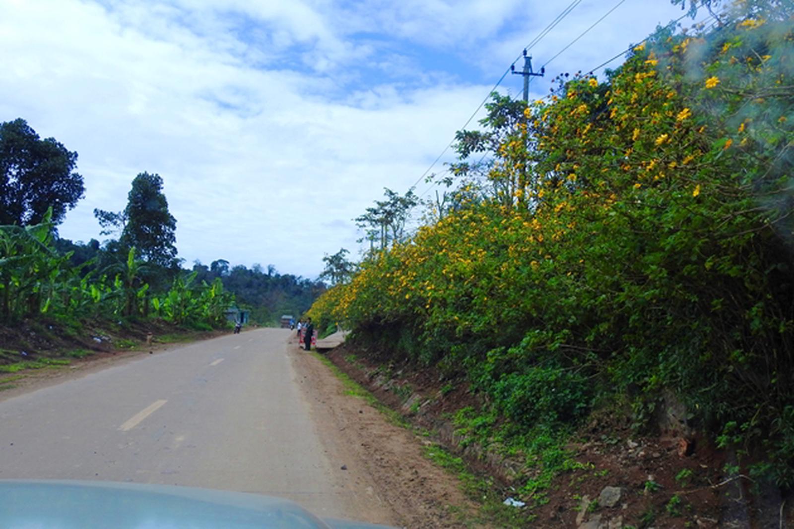 Hoa dã quỳ nở rộ trên đường vào Hướng Việt. Ảnh: Thanh Tùng